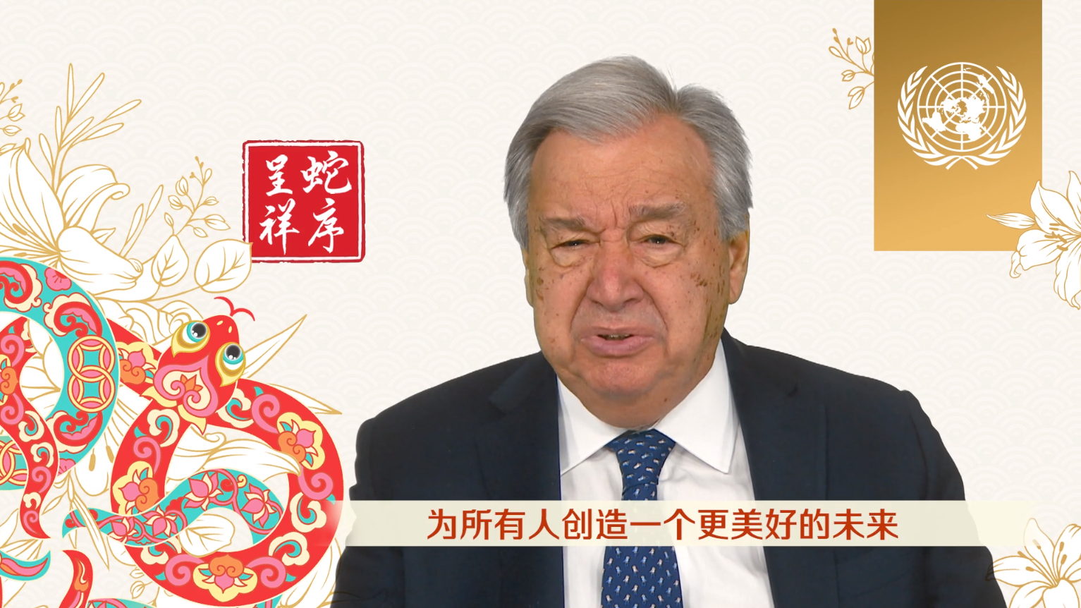 古特雷斯表示,蛇象征著智慧、堅(jiān)韌和新生。在當(dāng)前全球所處的這個(gè)艱難時(shí)刻,需要在這些品性的指引下,重振致力于和平、平等和正義的決心。