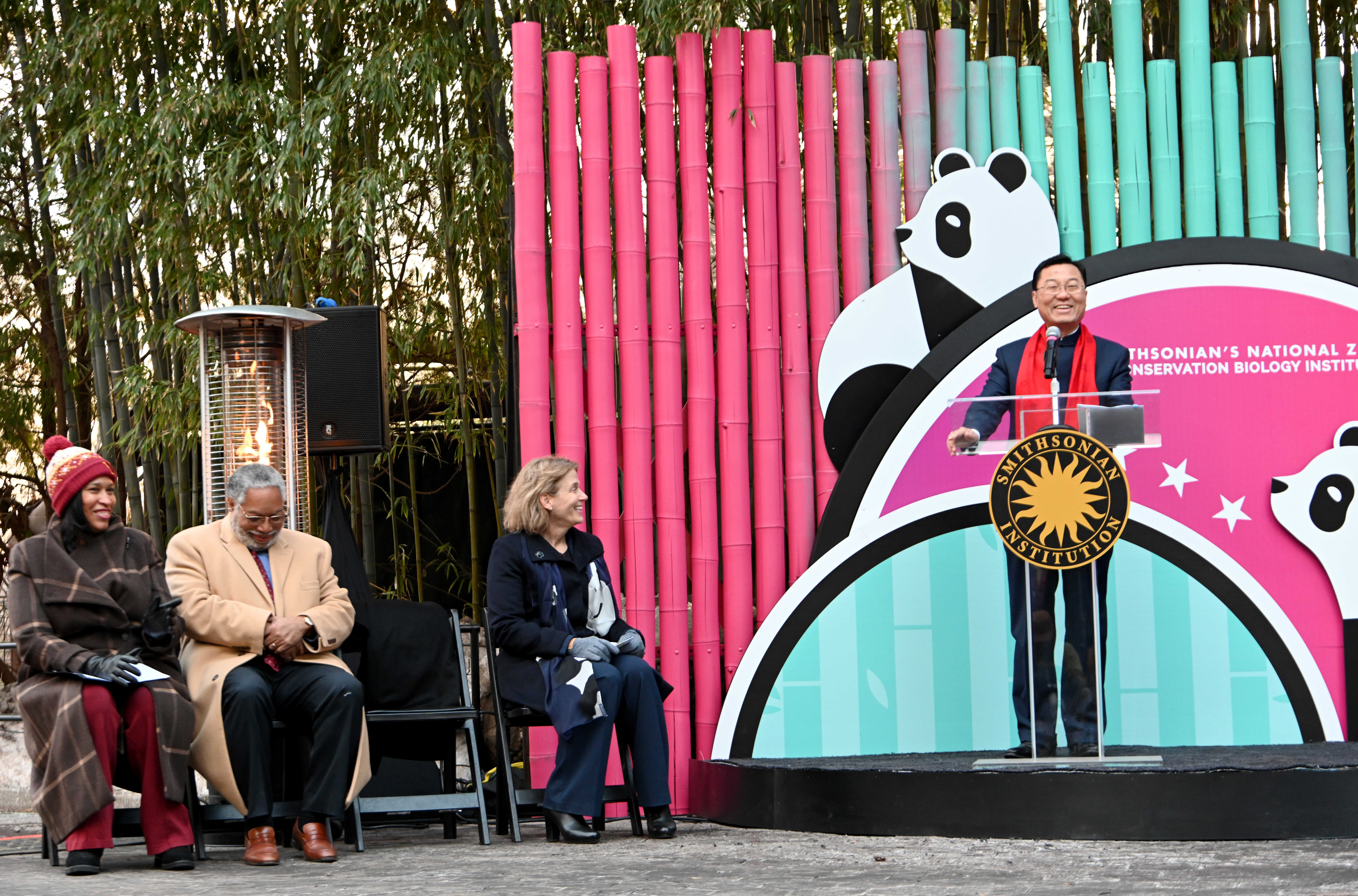 中美人民的大熊貓情緣跨越半個世紀,比中美建交還要早。華盛頓國家動物園與大熊貓有著不解之緣,1972年第一對旅美大熊貓就落戶華盛頓。2000年雙方開啟大熊貓保護合作以來,成功繁育了“泰山”“寶寶”“貝貝”“小奇跡”,培訓了1500多名野生動物保護專業人員,在大熊貓保護繁育、疾病救治、技術交流等方面取得了豐碩成果,為全球生物多樣性保護作出了重要貢獻,也給無數美國家庭帶來了溫暖與歡樂。歡迎“寶力”“青寶”來華府開啟為期10年的“常駐”生涯,相信雙方新一輪大熊貓保護合作將結出更多碩果,接續描繪人與自然和諧共生的美好畫卷。