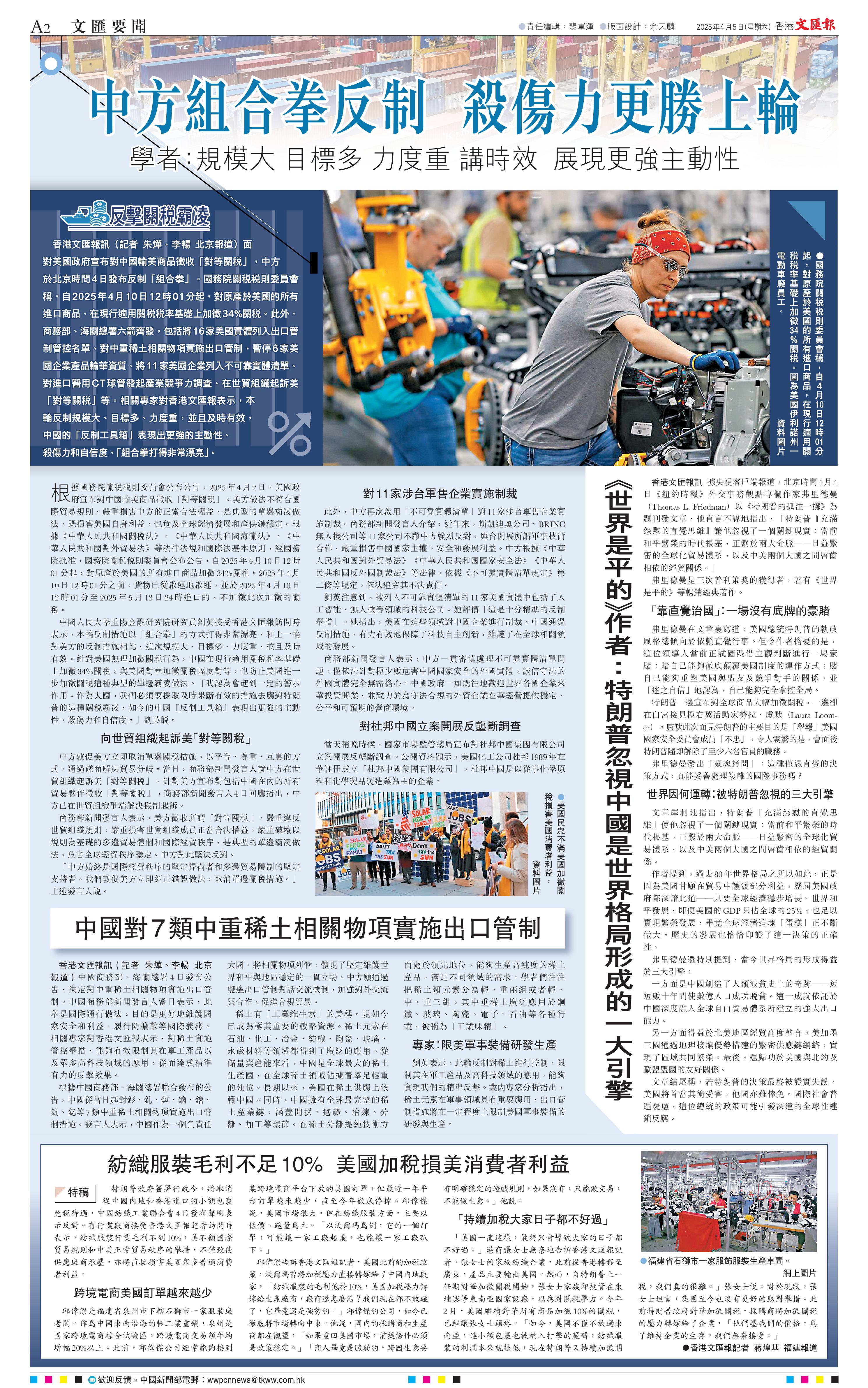 香港文匯報訊據(jù)央視客戶端報道,北京時間4月4日《紐約時報》外交事務(wù)觀點專欄作家弗里德曼(Thomas L. Friedman)以《特朗普的孤注一擲》為題刊發(fā)文章,他直言不諱地指出,「特朗普『充滿怨懟的直覺思維』讓他忽視了一個關(guān)鍵現(xiàn)實:當前和平繁榮的時代根基,正系于兩大命脈——日益緊密的全球化貿(mào)易體系,以及中美兩個大國之間唇齒相依的經(jīng)貿(mào)關(guān)系。」