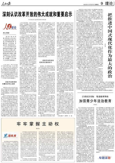 1978年,黨的十一屆三中全會(huì)拉開了改革開放的大幕。2013年,黨的十八屆三中全會(huì)開啟了全面深化改革、系統(tǒng)整體設(shè)計(jì)推進(jìn)改革的新時(shí)代,開創(chuàng)了我國(guó)改革開放的全新局面。日前召開的中央經(jīng)濟(jì)工作會(huì)議提出:“必須堅(jiān)持依靠改革開放增強(qiáng)發(fā)展內(nèi)生動(dòng)力”。總結(jié)和梳理改革開放45年來(lái)取得的偉大成就、帶來(lái)的深刻啟示,對(duì)于新征程上全面深化改革開放、實(shí)現(xiàn)第二個(gè)百年奮斗目標(biāo)具有重要意義。