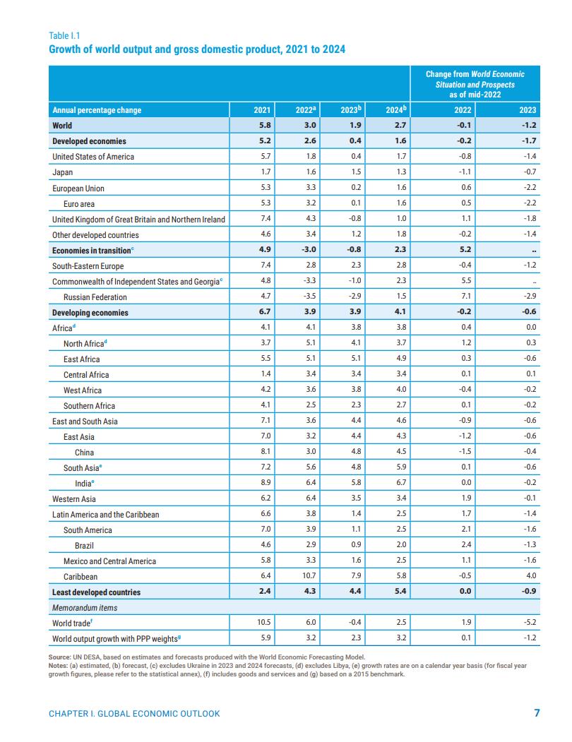 報告說,在新冠疫情、烏克蘭危機、高通貨膨脹和氣候變化等影響下,2022年世界經濟遭受重創,2023年世界經濟繼續承壓。如果一些宏觀經濟逆風能夠開始消退,世界經濟增長將在2024年回升至2.7%。