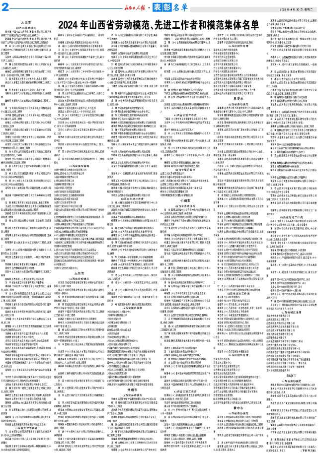 近年來,全省上下堅持以習近平新時代中國特色社會主義思想為指導,全面貫徹落實黨的二十大和二十屆二中全會精神,深入學習貫徹習近平總書記對山西工作的重要講話重要指示精神,堅決扛牢國家資源型經濟轉型綜改試驗區建設、深化能源革命綜合改革試點、推動黃河流域生態保護和高質量發展、打造內陸地區對外開放新高地等重大使命任務,勠力攻堅、真抓實干,推動山西經濟社會各項事業取得新進展,各行各業、各條戰線涌現出一大批愛崗敬業、無私奉獻,銳意創新、勇于擔當,貢獻突出、事跡感人的勞動模范、先進工作者和模范集體。為表彰先進樹榜樣,凝心聚力再出發,大力弘揚勞模精神、勞動精神和工匠精神,激勵全省人民以辛勤勞動、誠實勞動、創造性勞動投身高質量發展和現代化建設的火熱實踐,省委、省政府決定授予莊迎等503名同志“山西省勞動模范”榮譽稱號;授予楚志兵等194名同志“山西省先進工作者”榮譽稱號;授予太原重工股份有限公司技術中心等200個集體“山西省模范集體”榮譽稱號。