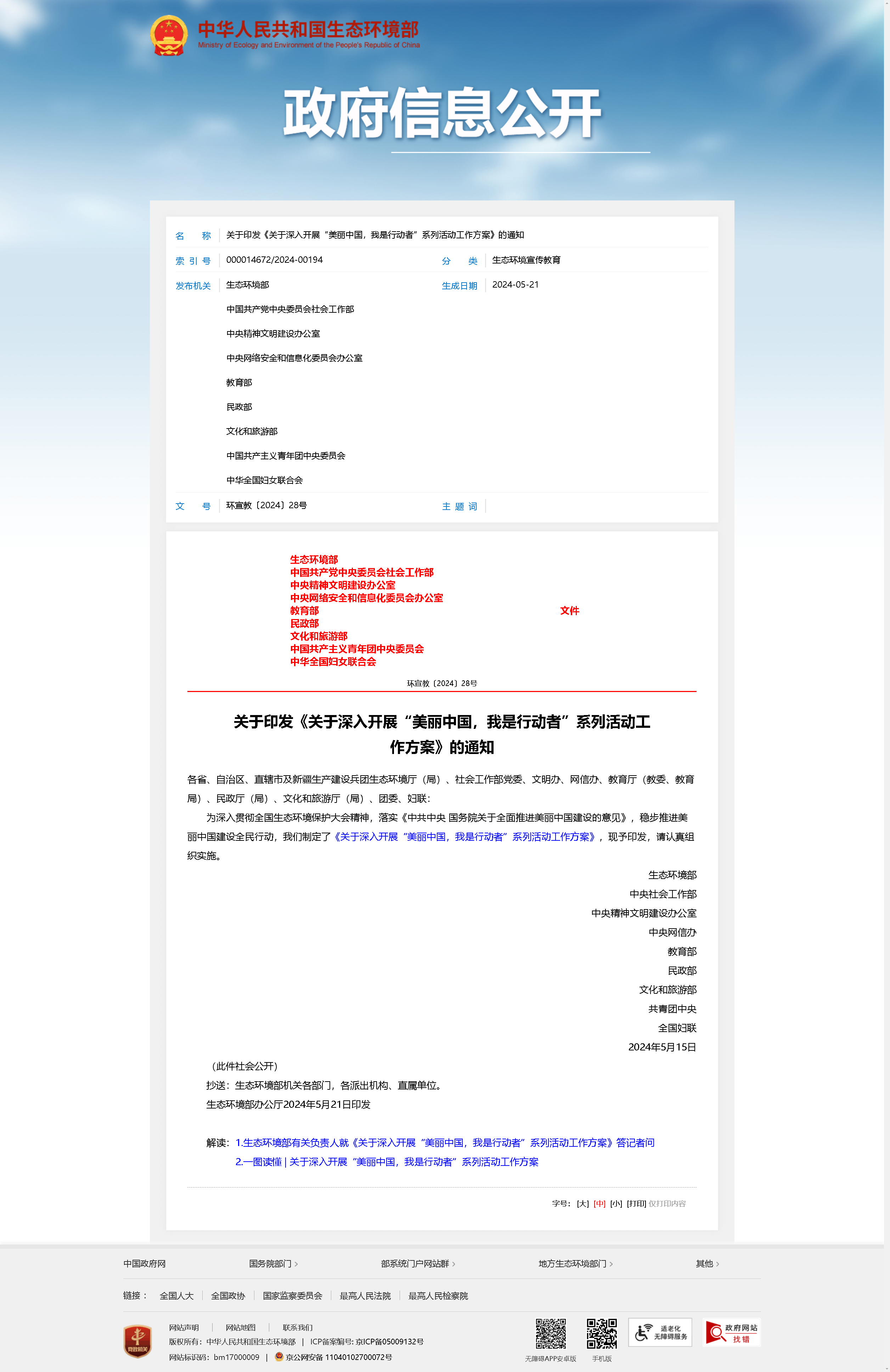 生態環境部等九部門印發方案,深入開展“美麗中國,我是行動者”系列活動