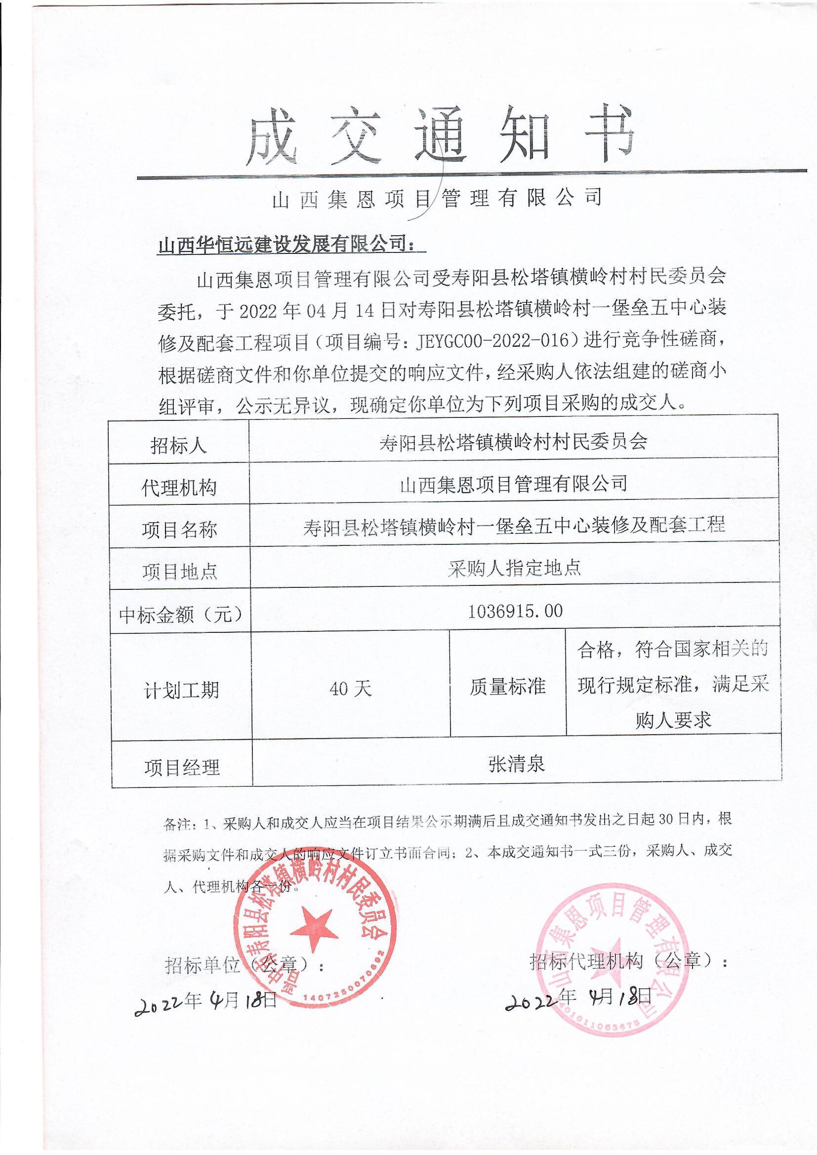 壽陽縣松塔鎮(zhèn)橫嶺村堡壘五中心裝修及配套工程