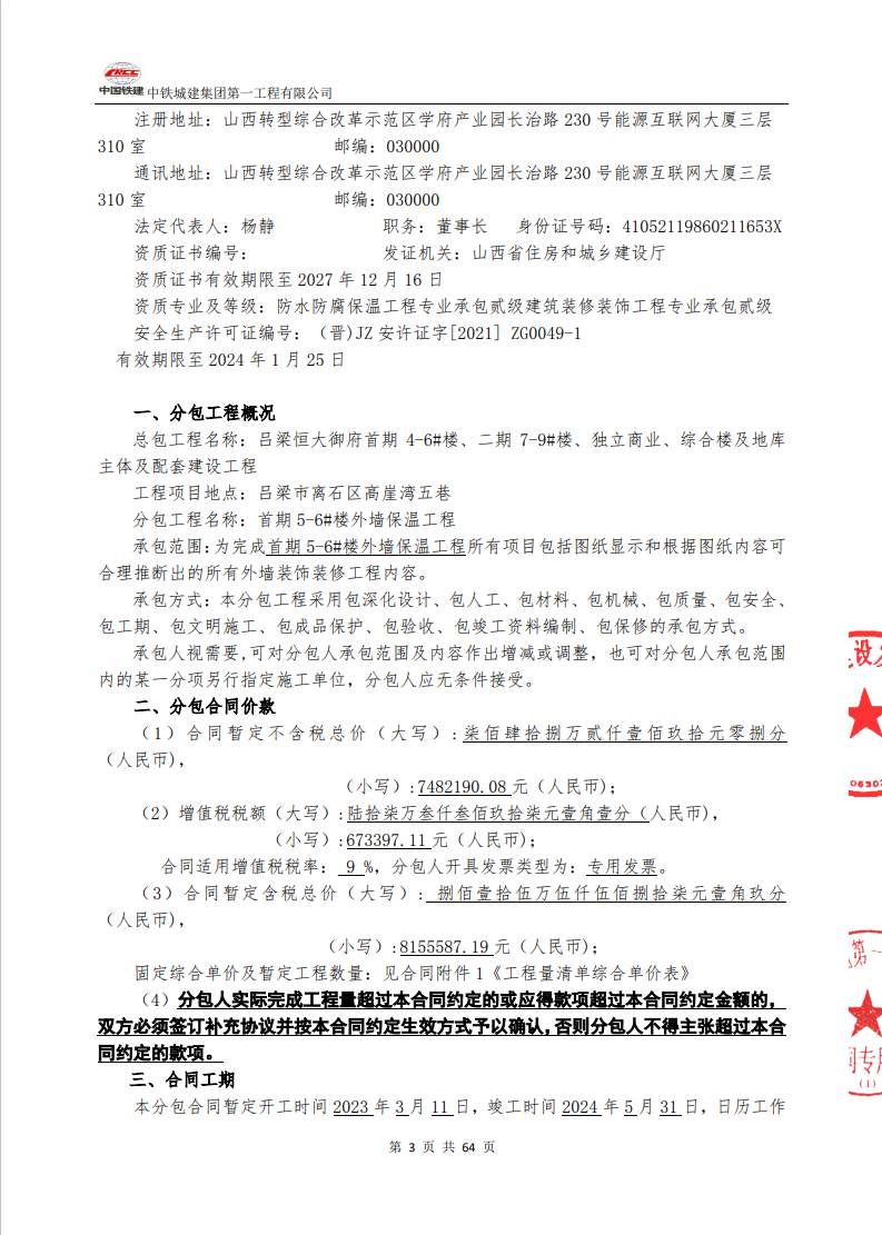 呂梁恒大御府首期 4-6#樓、二期 7-9#樓、獨立商業(yè)、綜合樓及地庫 主體及配套建設(shè)工程
