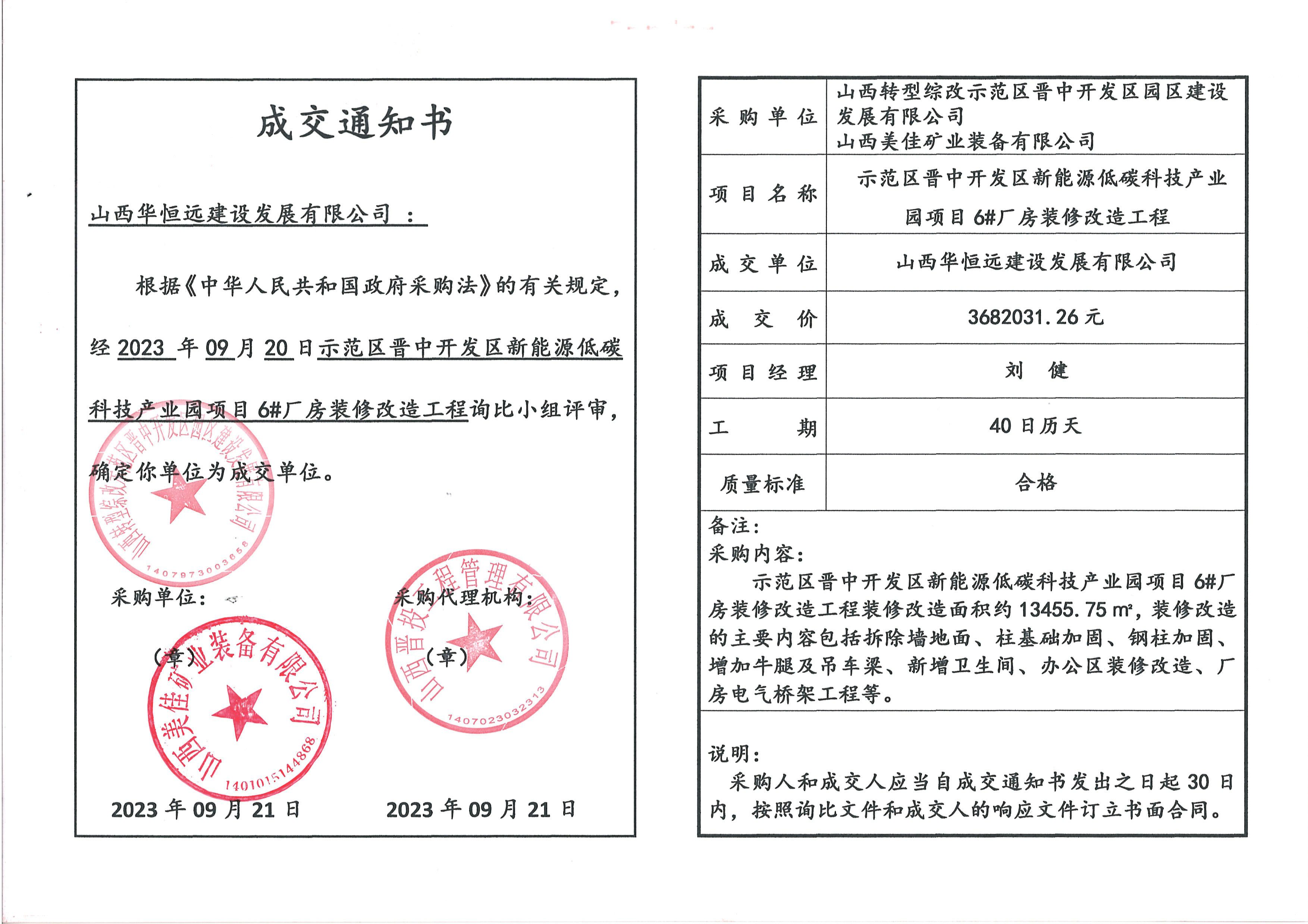 示范區晉中開發區新能源低碳科技產業園項目6#廠房裝修改造工程