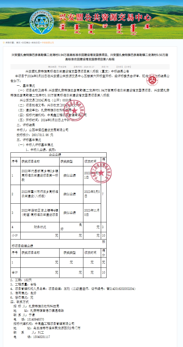興安盟扎賚特旗巴彥高勒鎮二龍濤村0.94萬畝高標準農田建設增發國債項目、興安盟扎賚特旗巴彥高勒鎮二龍濤村0.50萬畝高標準農田建設增發國債項目第八標段