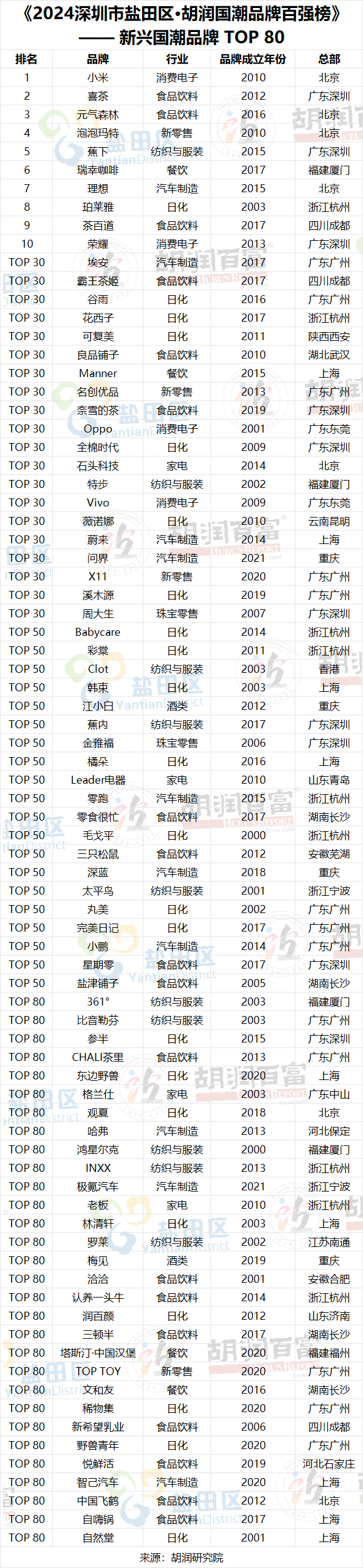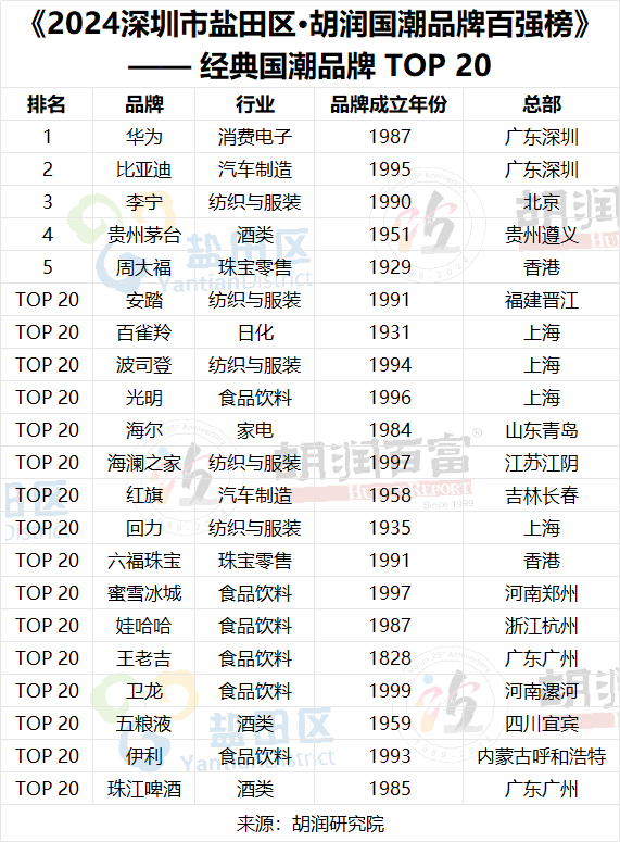 2024深圳市鹽田區·胡潤國潮品牌百強榜