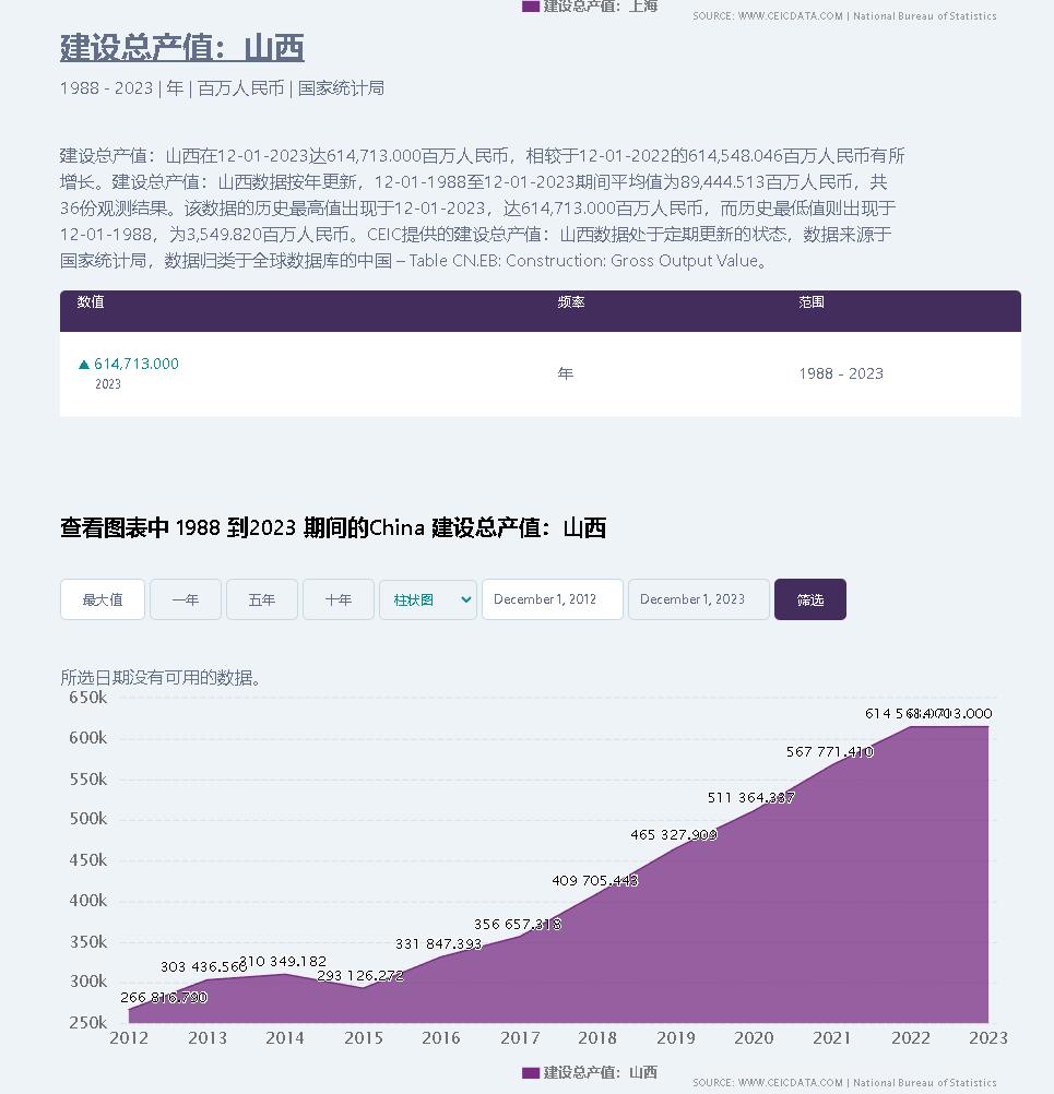 新中國成立之初,百業待興,建筑業作為最早復蘇的產業之一,在完成總體布局的基礎上快速發展。1952年,全國建筑業企業完成總產值57億元;1956年完成總產值146億元,突破百億大關。建筑業也是我國最早實行改革和開放的行業之一,改革開放后,隨著我國經濟建設的大規模進行,建筑業迅速發展。1988年完成總產值1132億元,突破千億大關;1998年完成總產值10062億元,突破萬億大關;2011年完成總產值11.6萬億元,突破十萬億大關。黨的十八大以來,建筑業繼續保持較快增長,2023年完成總產值31.6萬億元,1953—2023年年均增長12.9%。