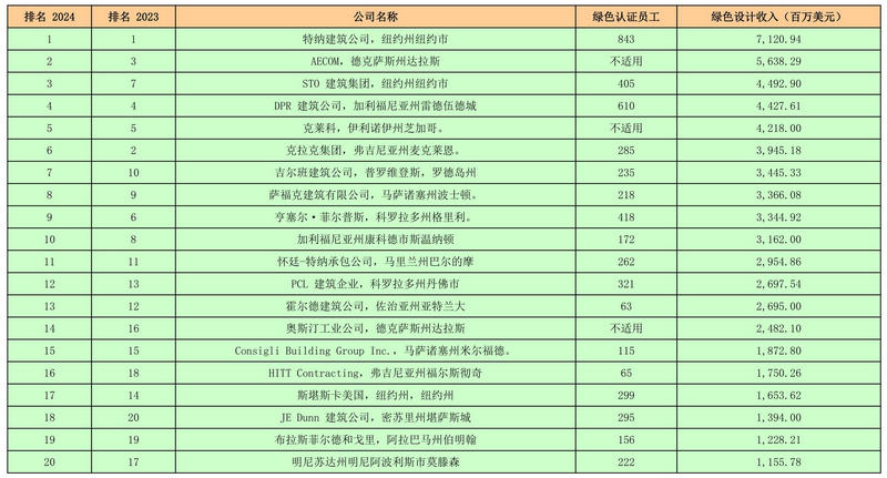 ENR 2024年度綠色建筑承包商100強