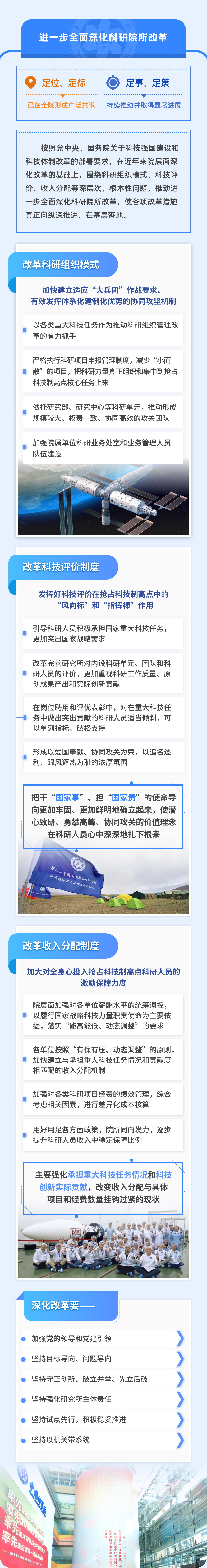 會議強(qiáng)調(diào),要按照黨中央部署要求,在近年來院層面深化改革的基礎(chǔ)上,把改革的著力點(diǎn)和重心聚焦到研究所層面,使各項(xiàng)改革措施真正向縱深推進(jìn)、在基層落地。要切實(shí)增強(qiáng)改革意識和責(zé)任擔(dān)當(dāng),選準(zhǔn)突破口、牽住“牛鼻子”,聚焦科研組織、科技評價、收入分配等制約體系化建制化優(yōu)勢發(fā)揮的深層次、根本性問題,率先發(fā)力破局。要加強(qiáng)黨的領(lǐng)導(dǎo)和黨建引領(lǐng),堅(jiān)持目標(biāo)導(dǎo)向、問題導(dǎo)向,堅(jiān)持守正創(chuàng)新、破立并舉、先立后破,堅(jiān)持試點(diǎn)先行,堅(jiān)持機(jī)關(guān)帶系統(tǒng),強(qiáng)化研究所主體責(zé)任,精心謀劃組織,積極穩(wěn)妥推進(jìn)。