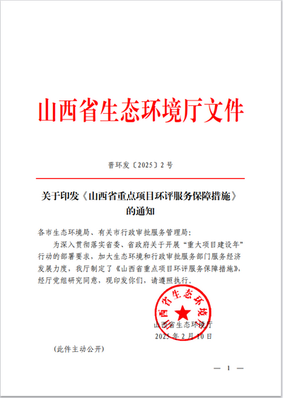 本報訊(記者程國媛)為深入貫徹落實省委、省政府關于開展“重大項目建設年”行動的部署要求,2月10日,省生態環境廳印發《山西省重點項目環評服務保障措施》的通知,共3方面11項措施,從健全服務專班、精簡審批程序、統籌推進環評工作3方面入手,切實服務重點項目落地見效。