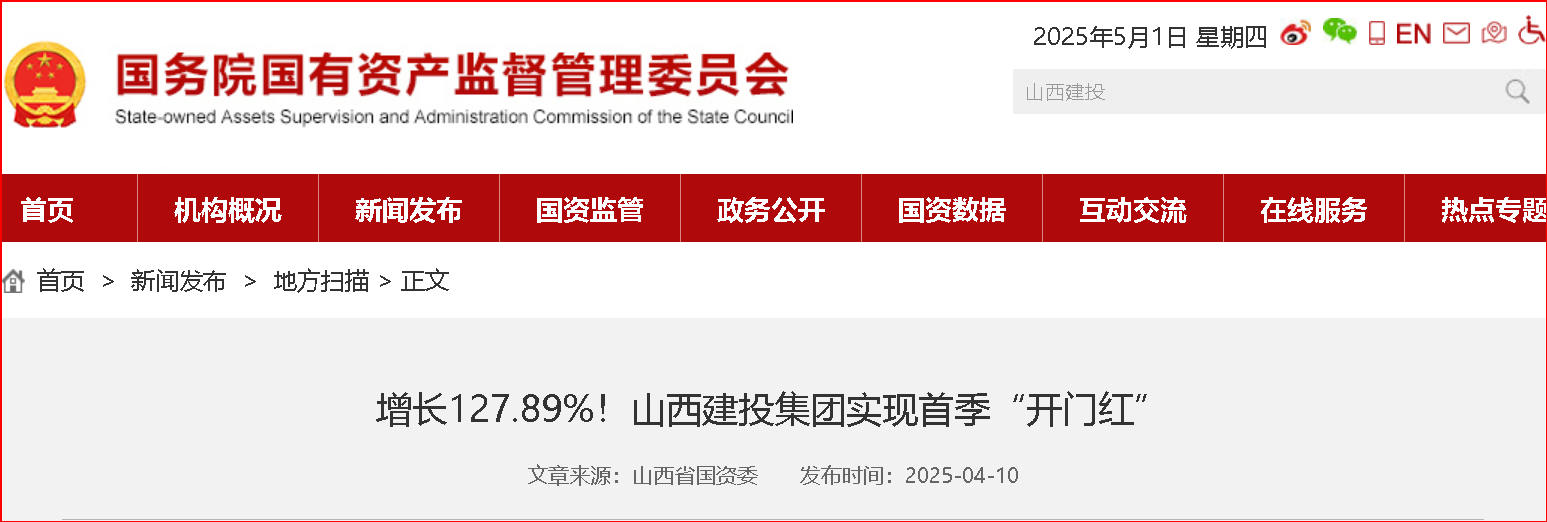 37 增長127.89%!山西建投集團實現首季“開門紅” www.sasac.gov.cn/n2588025...2025-04-10