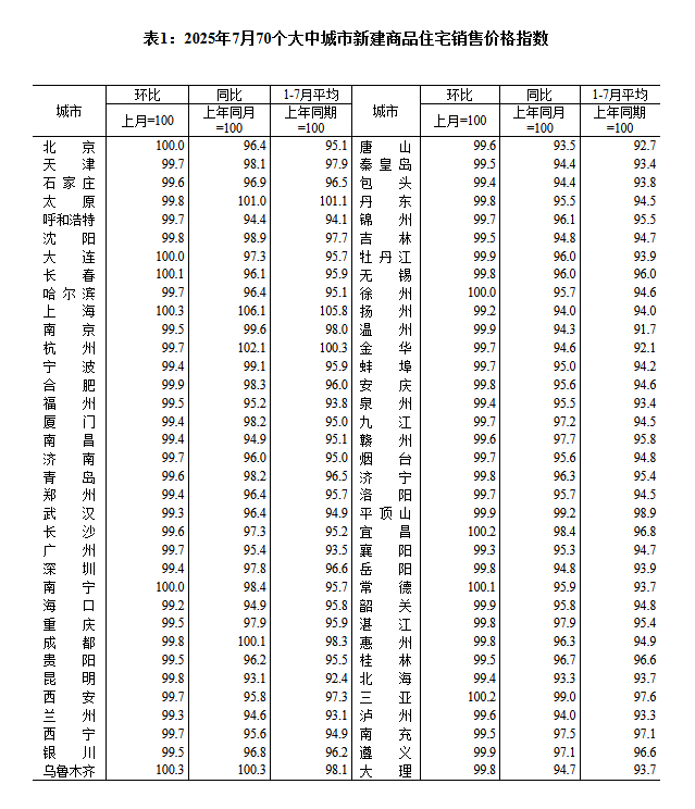 8月15日,國家統計局網站發布《2025年7月份70個大中城市商品住宅銷售價格變動情況 》,國家統計局城市司首席統計師王中華就統計數據做出解讀。