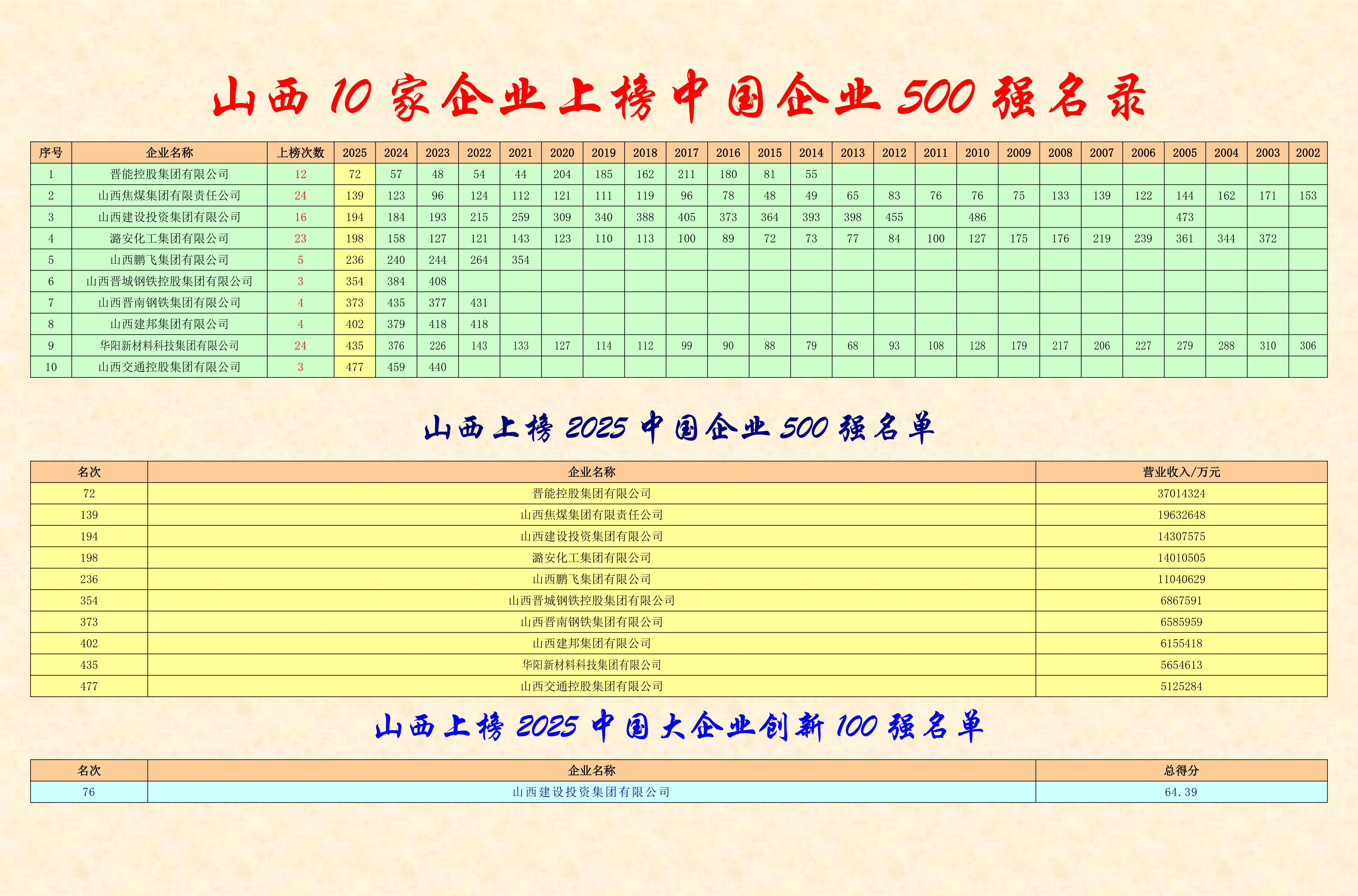 “2025中國企業500強”榜單