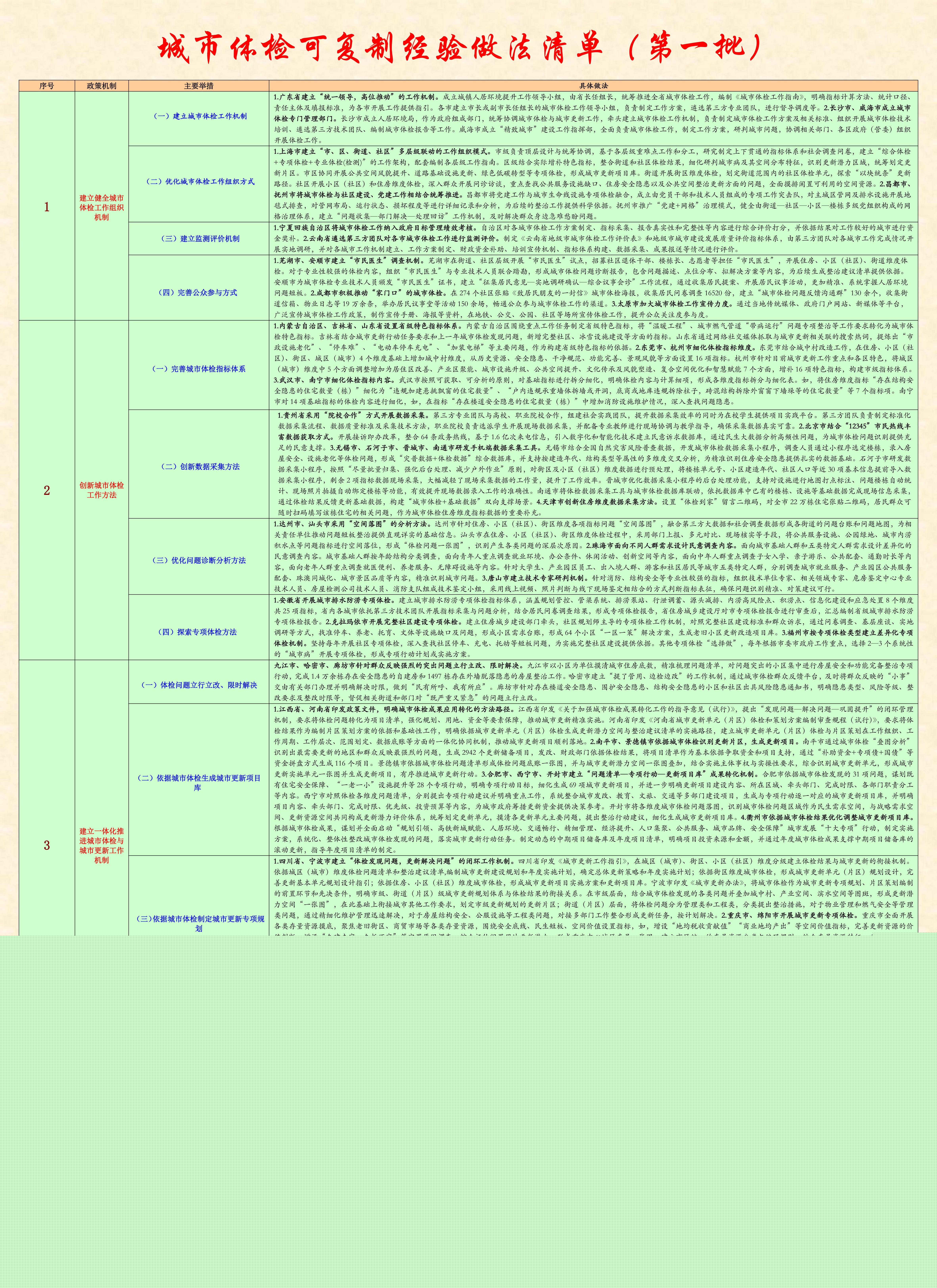 為貫徹落實中央城市工作會議精神和《中共中央、國務院關于推動城市高質量發展的意見》《中共中央辦公廳、國務院辦公廳關于持續推進城市更新行動的意見》部署要求,深入推進城市體檢工作,住房城鄉建設部總結各地在建立健全城市體檢工作組織機制、創新城市體檢工作方法、建立一體化推進城市體檢與城市更新工作機制、加強城市體檢工作保障等方面的經驗做法,形成《城市體檢可復制經驗做法清單(第一批)》(以下簡稱《清單》)并于近日發布。