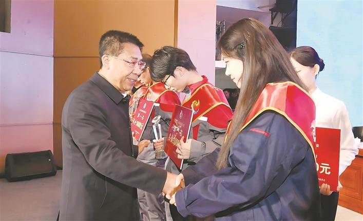 圖為市委書(shū)記孫大軍為“呂梁技術(shù)狀元”稱(chēng)號(hào)獲得者頒獎(jiǎng)。 記者 王益煒 攝