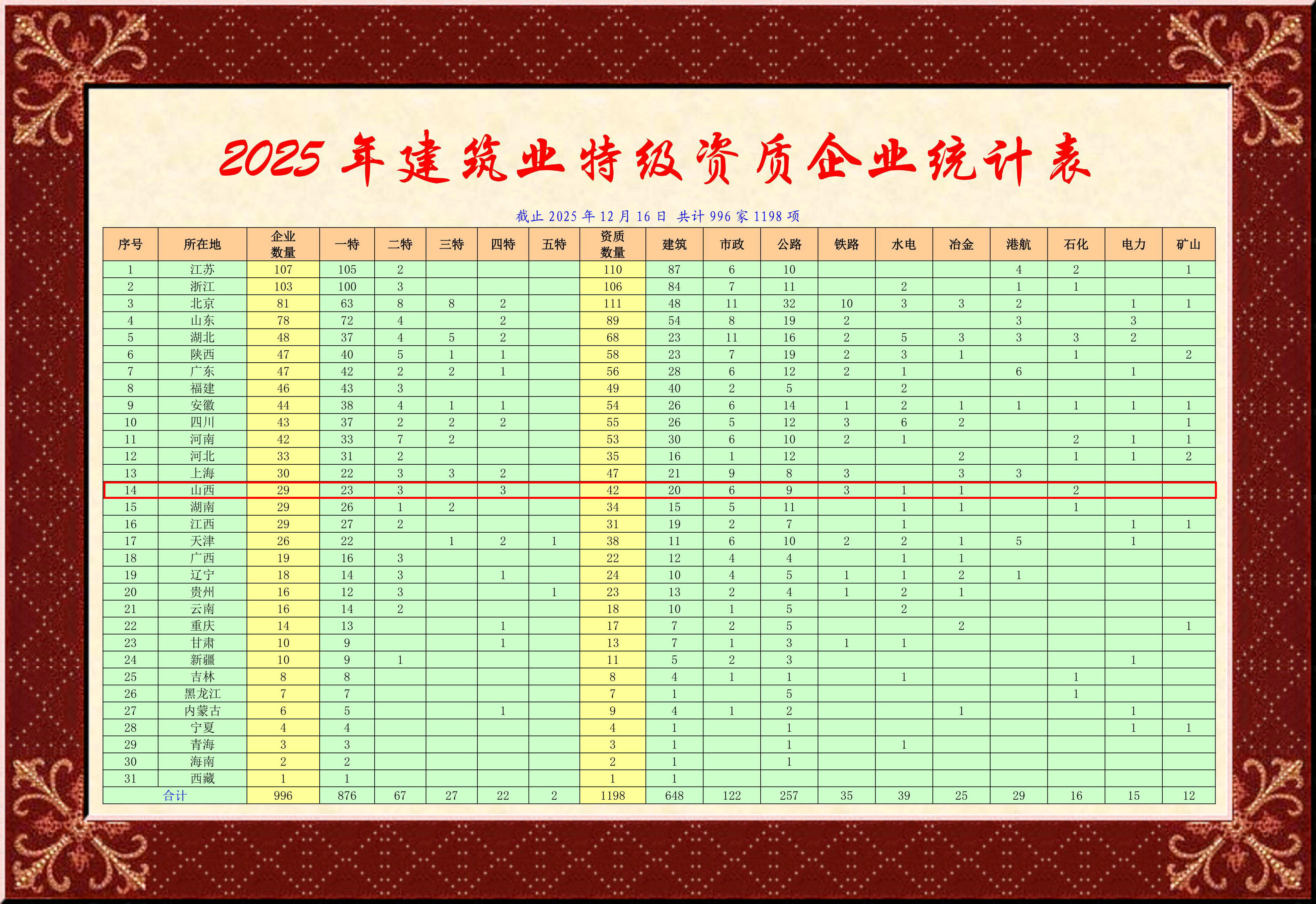 根據(jù)《中華人民共和國建筑法》及有關(guān)建設(shè)工程企業(yè)資質(zhì)管理規(guī)定,現(xiàn)將我部核準(zhǔn)的工程勘察資質(zhì)、工程設(shè)計(jì)資質(zhì)、建筑業(yè)企業(yè)資質(zhì)、工程監(jiān)理企業(yè)資質(zhì)的單位名單(2025年度第十二批)予以公布。未予核準(zhǔn)的單位可登錄住房城鄉(xiāng)建設(shè)部政務(wù)服務(wù)門戶,點(diǎn)擊“申請(qǐng)事項(xiàng)辦理進(jìn)度查詢(受理發(fā)證信息查詢)”欄目查詢?cè)颉?