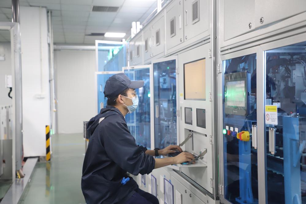 安徽池州高新區,池州市駿智機電科技有限公司的生產車間里,一片片新能源動力電池頂蓋板平穩“走”下生產線。