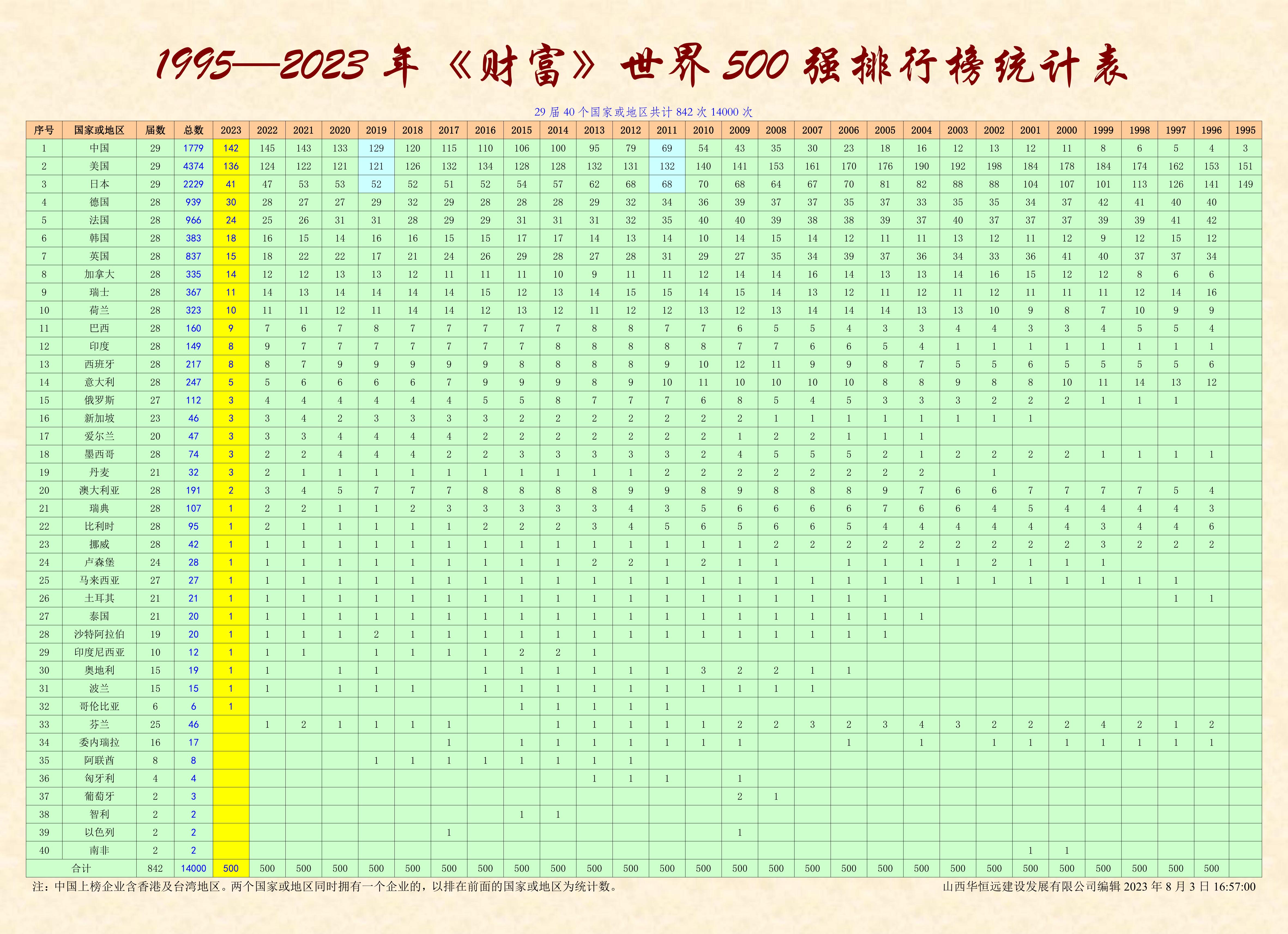 1995年,《財富》雜志首次公布世界500強企業。日本有149家,美國有151家,占世界500強企業的近30%。當時,世界500強企業中只有3家在中國。