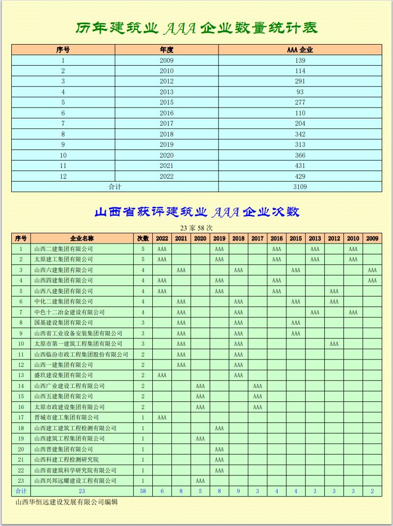按照《建筑業企業信用評價辦法》(建協〔2018〕18號),經企業自愿申請、各地區和有關行業建筑業(建設)協會推薦、信用信息核實、專家組評審,初定中國建筑第二工程局有限公司等370家企業為2023年度建筑業AAA級信用企業(名單見附件)。為保證評價工作的公開、公平、公正,現將評價結果通過中國建筑業協會官網(www.zgjzy.org.cn)進行公示,接受社會監督。如有不同意見,請于2023年11月13日前將書面情況寄送至中國建筑業協會。單位反映情況須加蓋公章,個人反映情況須簽署真實姓名并留下聯系電話、地址。