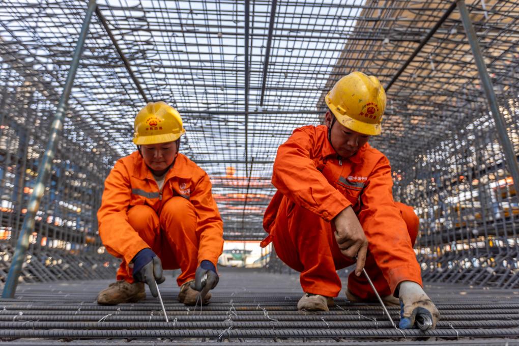 施工人員在滬蘇通鐵路二期項目作業(yè)。新華社記者 王翔 攝