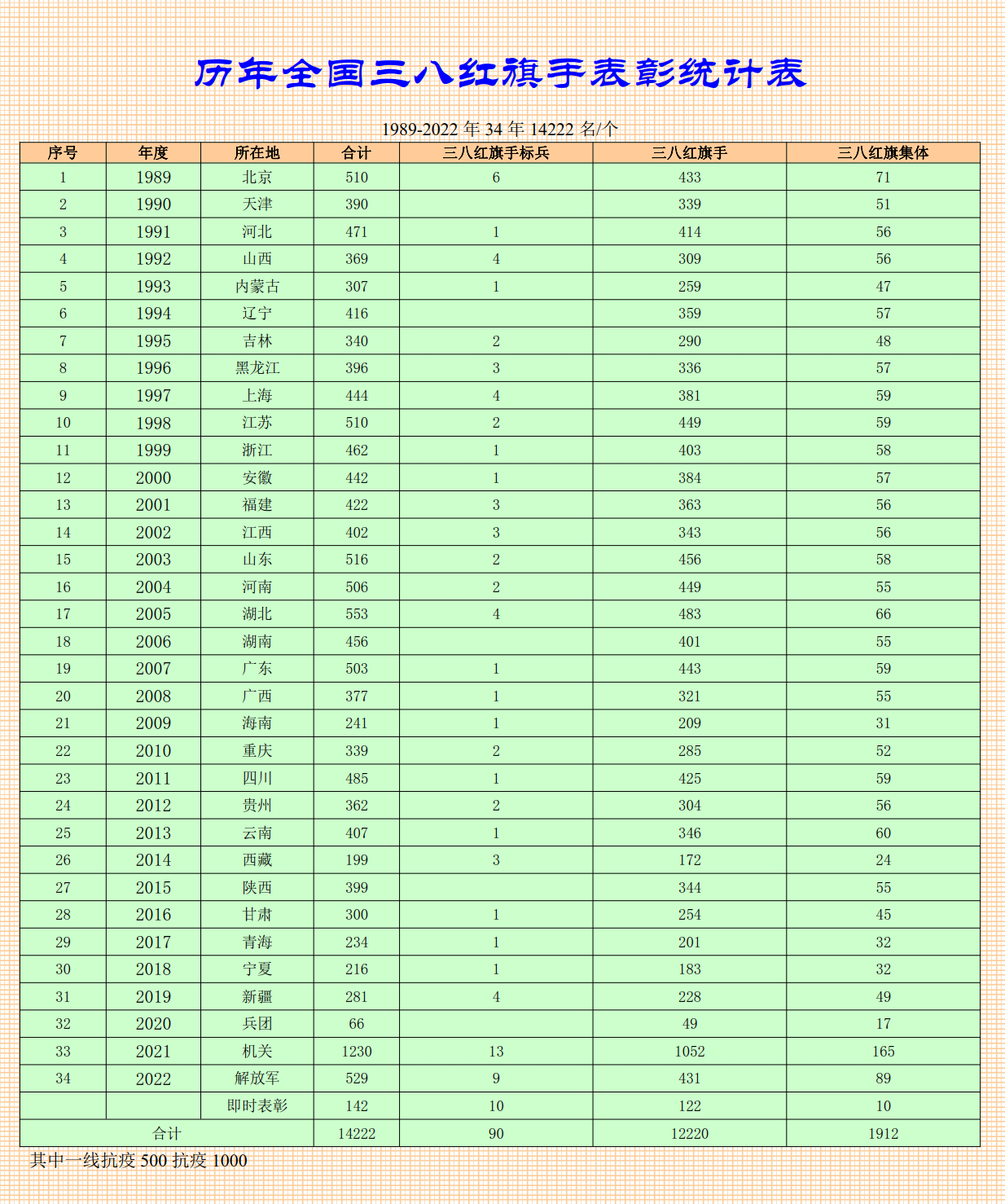 1989-2021年山西省榮獲全國三八紅旗手標兵、三八紅旗手、三八紅旗集體名單