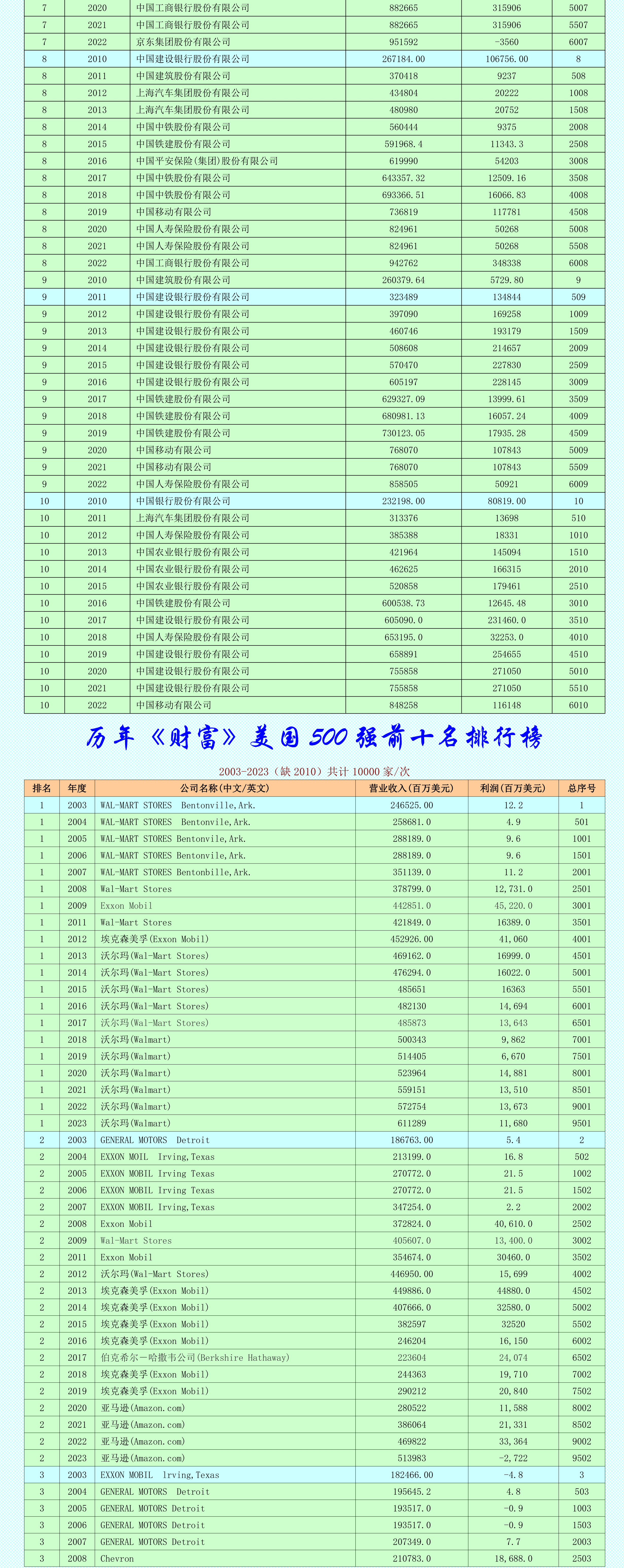 【行業(yè)資料】2003-2023《財富》美國500強(qiáng)總榜單