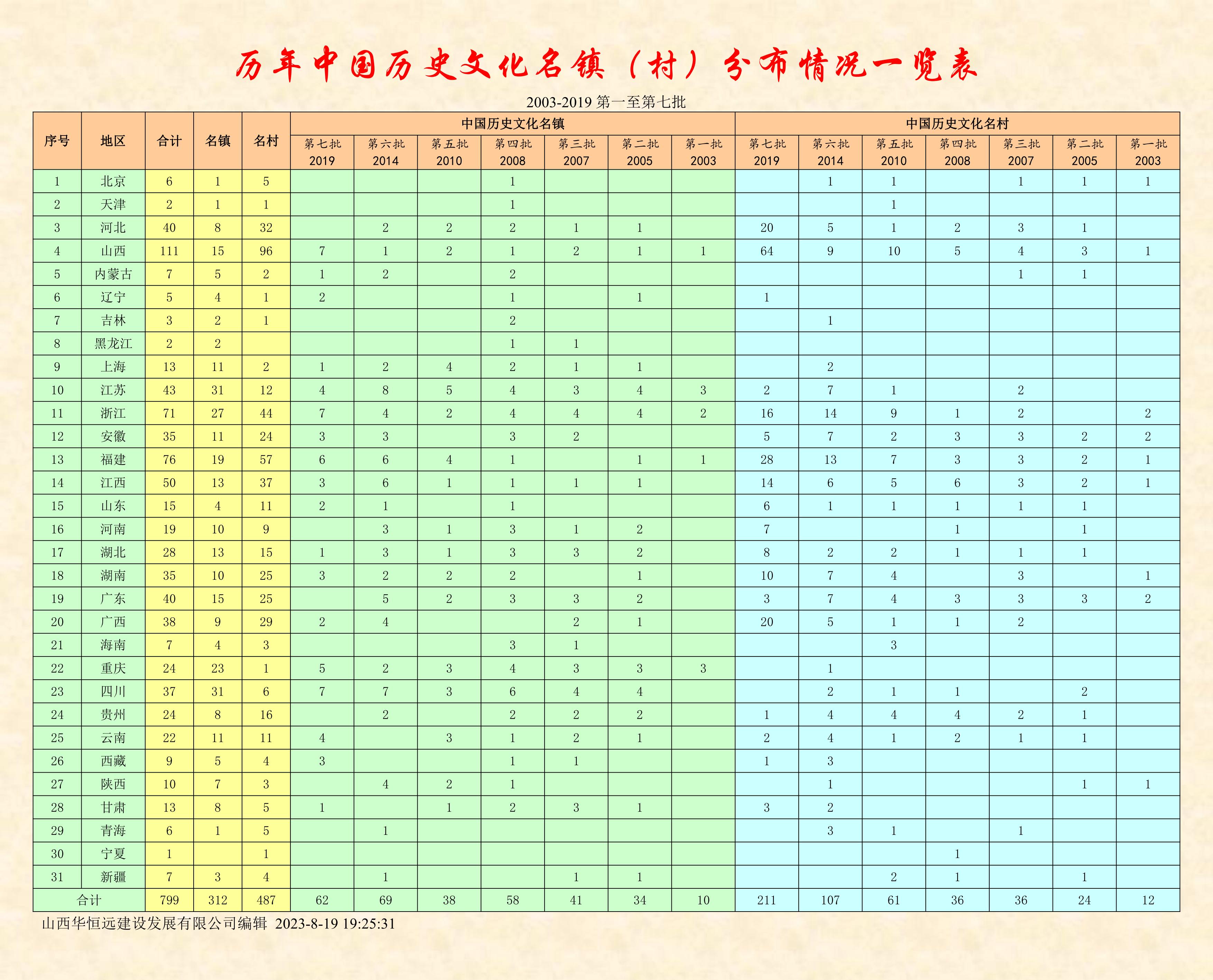 1-7批共計111個,其中:名鎮15個,名村96個。