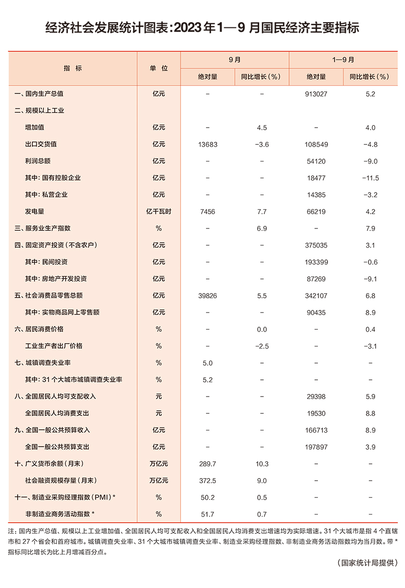 經(jīng)濟社會發(fā)展統(tǒng)計圖表:2023年1—9月國民經(jīng)濟主要指標