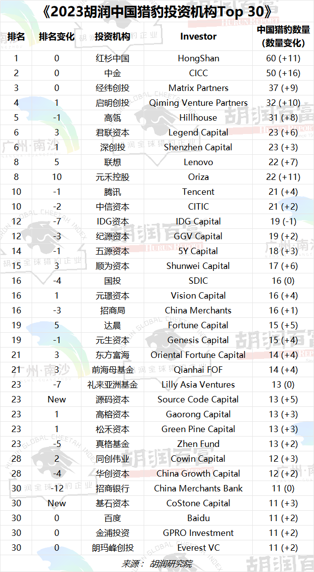 《2023胡潤中國獵豹投資機構Top 30》