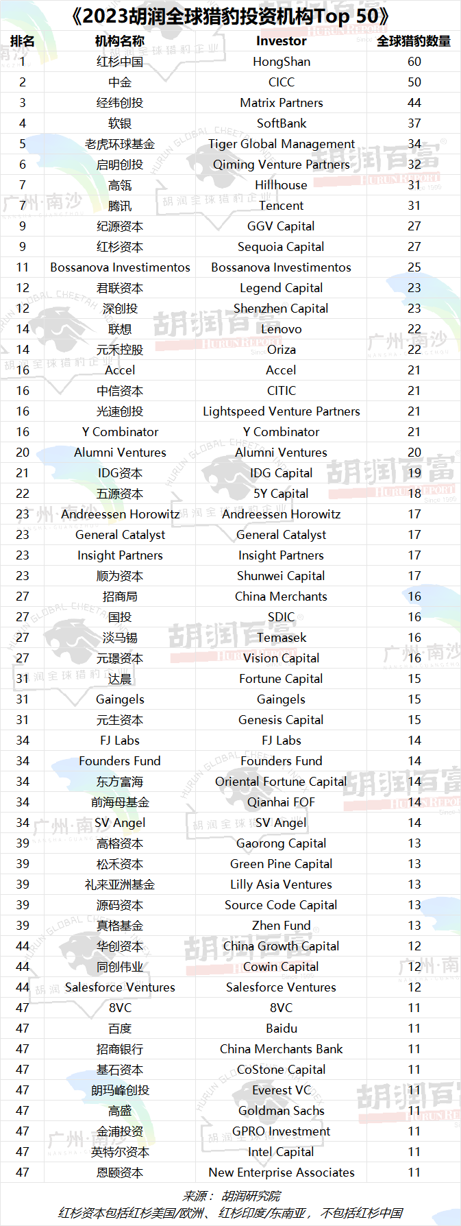 《2023胡潤全球獵豹投資機構Top 50》