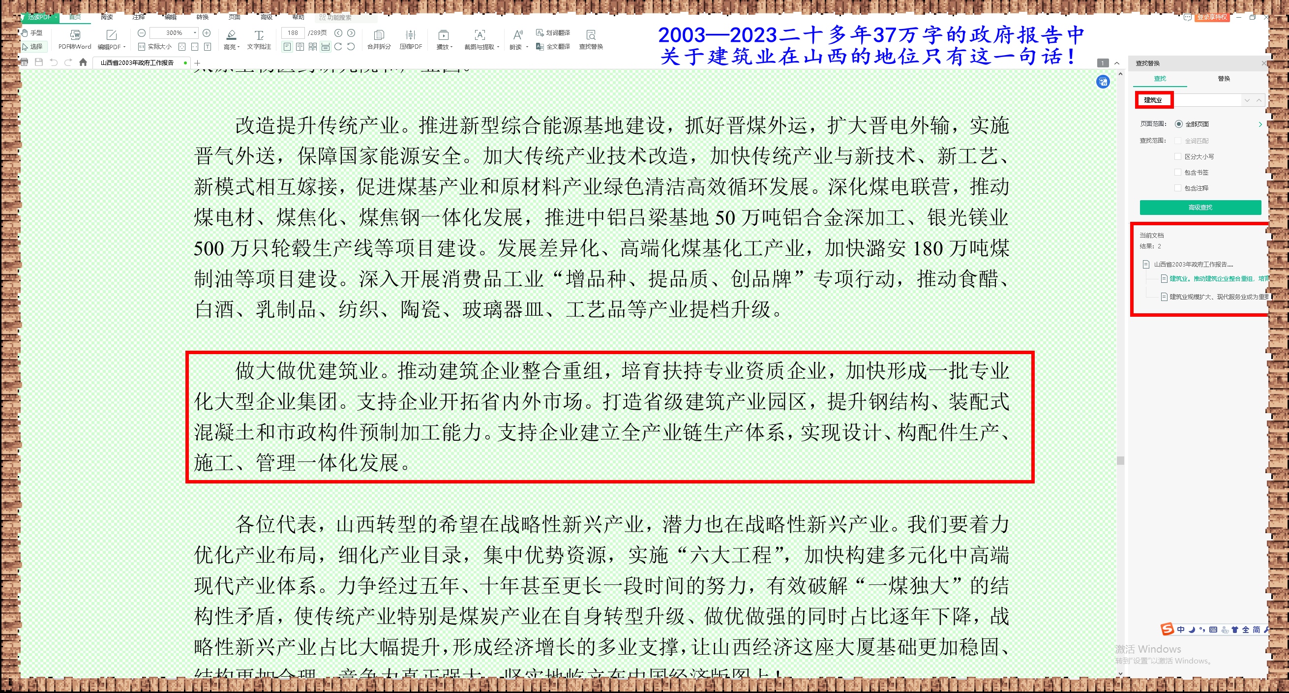 (一)加大升級再造力度,壯大轉型發展支撐。扎實推進新型工業化,實施產業鏈“鏈長制”,梯度培育特色專業鎮,首批省級10大重點產業鏈、10大重點專業鎮營業收入增速均保持在20%以上,新增6條省級重點產業鏈和8個省級重點專業鎮。在產鋼鐵企業全部完成超低排放改造,全面關停4.3米焦爐,焦化行業先進產能占比達到96.6%。晶科能源、中電科碳化硅二期、泰山玻纖等戰略性新興產業項目加快建設。大力發展通航產業,成功舉辦太原國際通用航空博覽會。累計建成5G基站9.3萬個,提前兩年完成“十四五”建設任務。獲批16個工業互聯網標識解析二級節點。數據中心標準機架超過91萬架。確定10家省級數字化轉型促進中心,認定5家省級數字經濟示范園區。深入實施服務業提質增效十大行動。太原市入選國家綜合貨運樞紐補鏈強鏈城市。創建太原鐘樓步行街等4家國家級旅游休閑街區、忻州古城等15家省級文旅康養示范區。舉辦旅發大會、康養大會、文博會。加快質量強省建設,打造區域公用品牌,推出79個“山西精品”產品和服務。