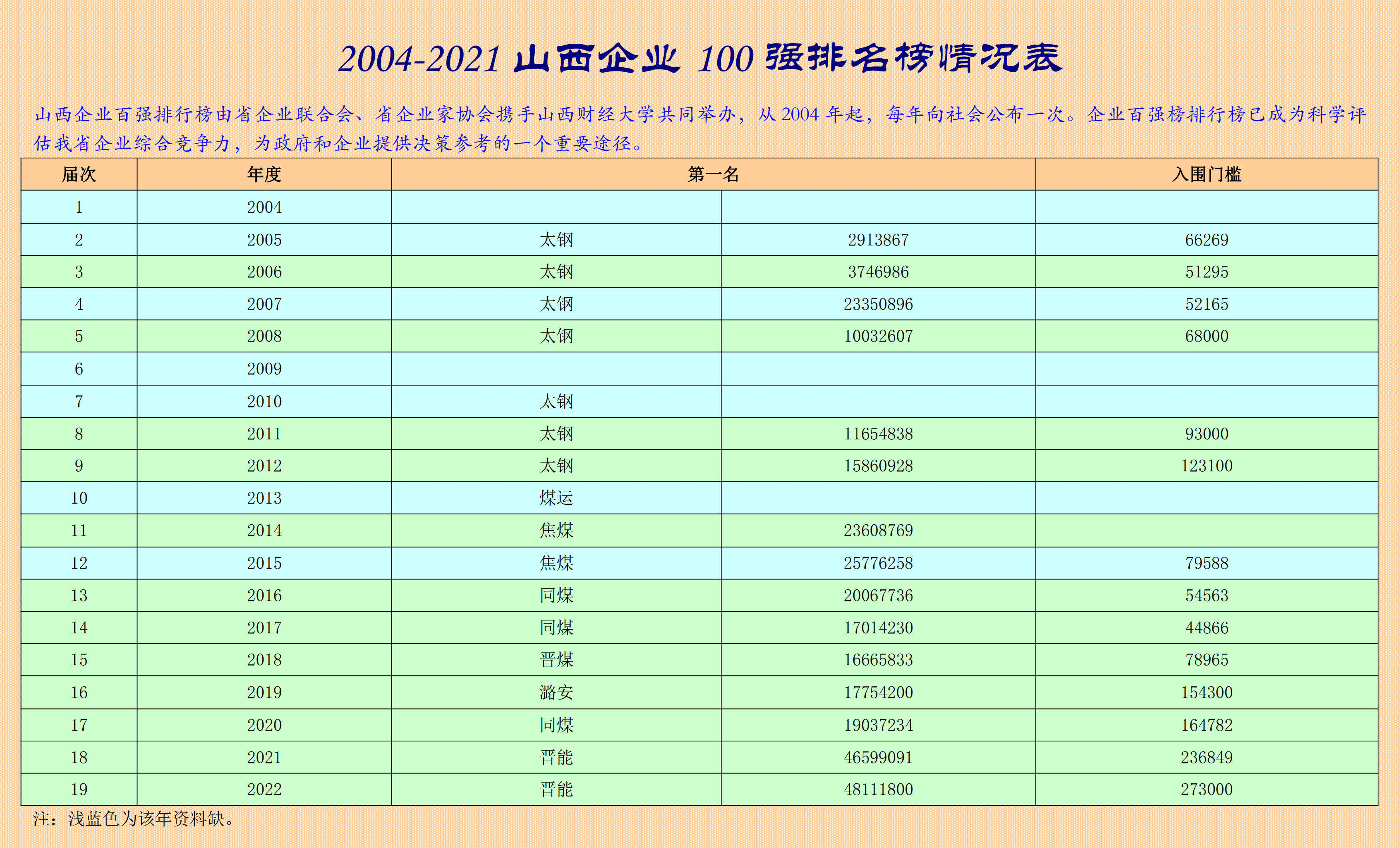 歷年山西企業100強排名榜