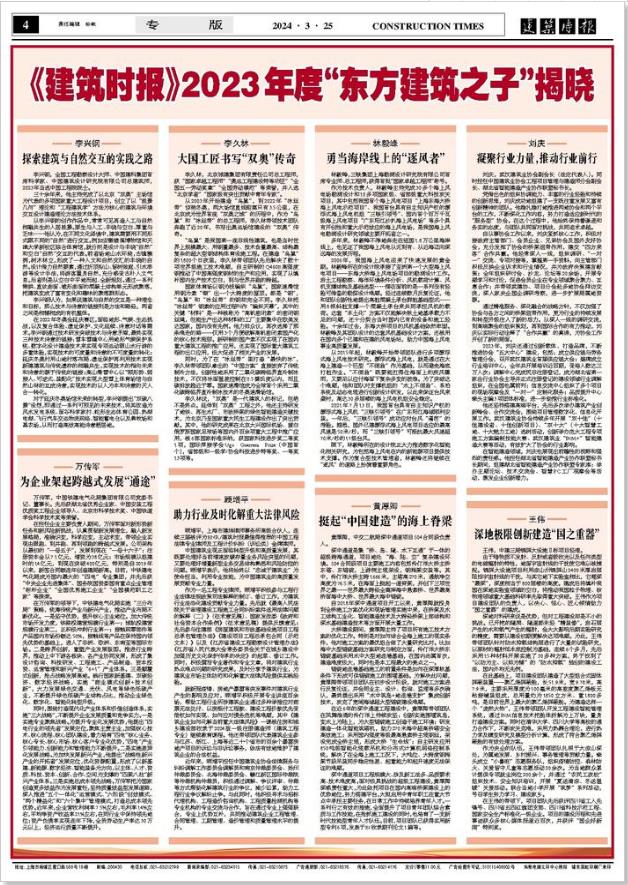 【行業(yè)動(dòng)態(tài)】《建筑時(shí)報(bào)》2023年度“東方建筑之子”揭曉