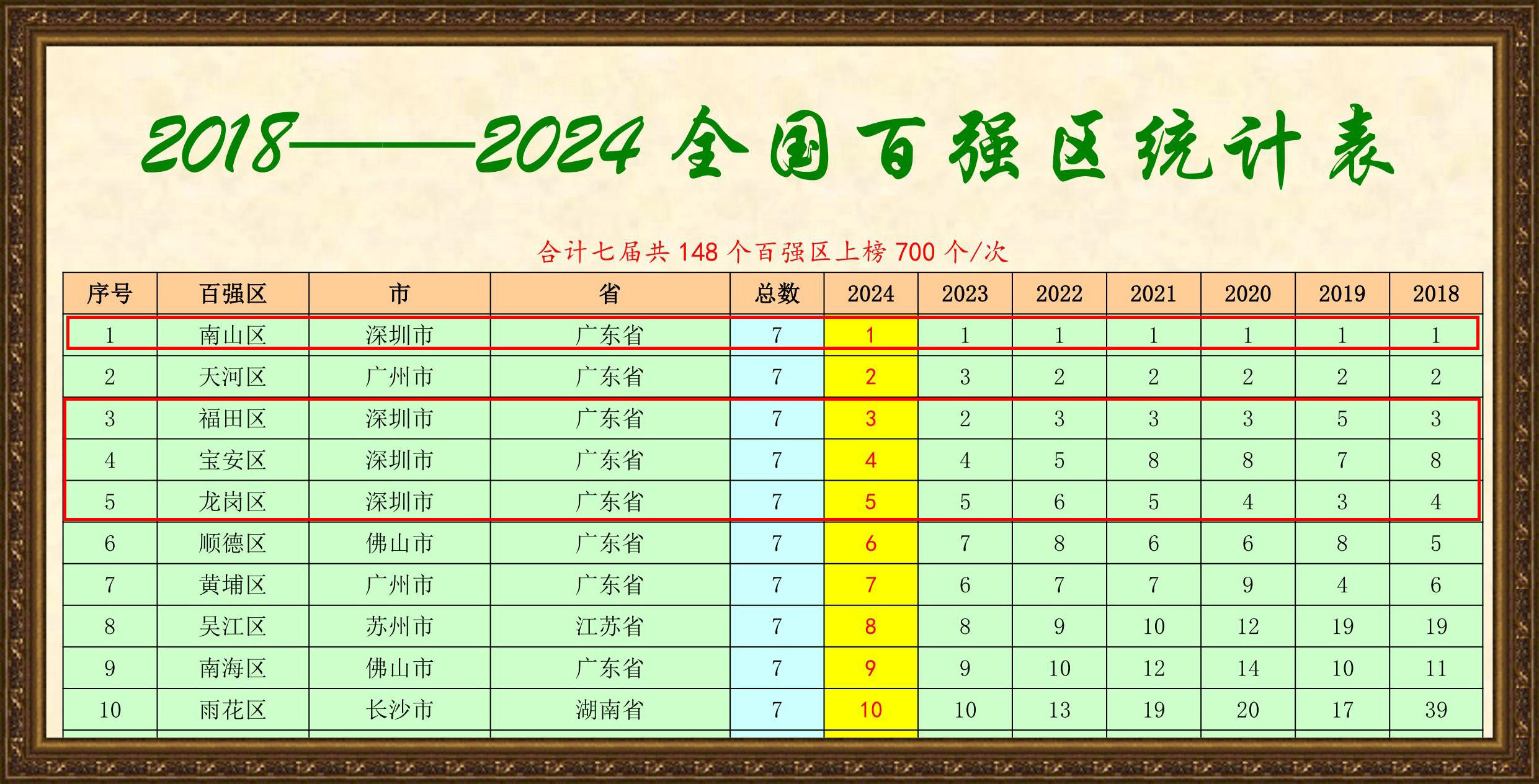 8月2日,賽迪顧問城市經濟研究中心發布“2024賽迪百強區”榜單,深圳南山區排名第一,這也是南山區連續7年位居全國百強區榜首。
