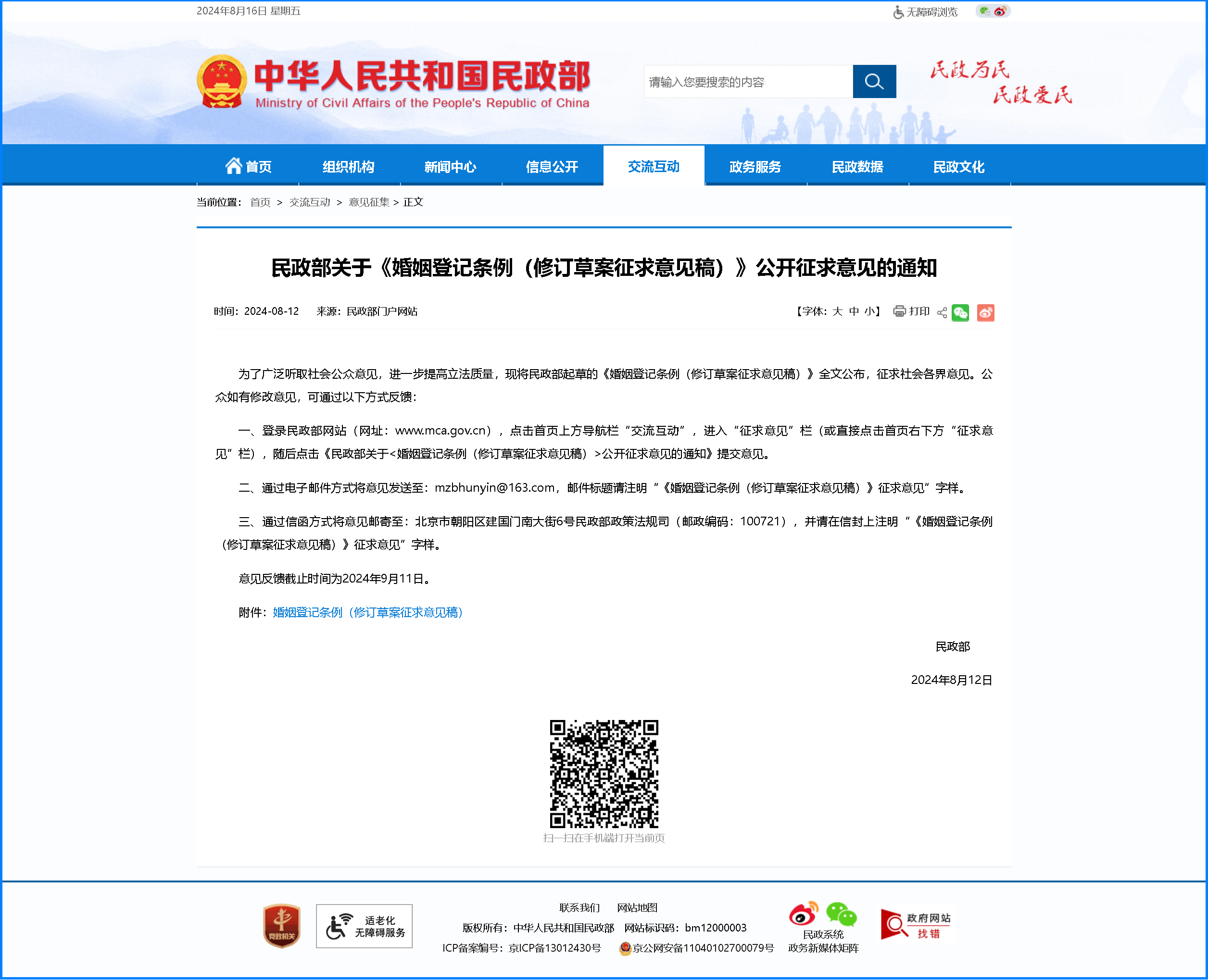 新華社北京8月16日電 題:民政部有關(guān)司局負(fù)責(zé)人解讀《婚姻登記條例(修訂草案征求意見(jiàn)稿)》
