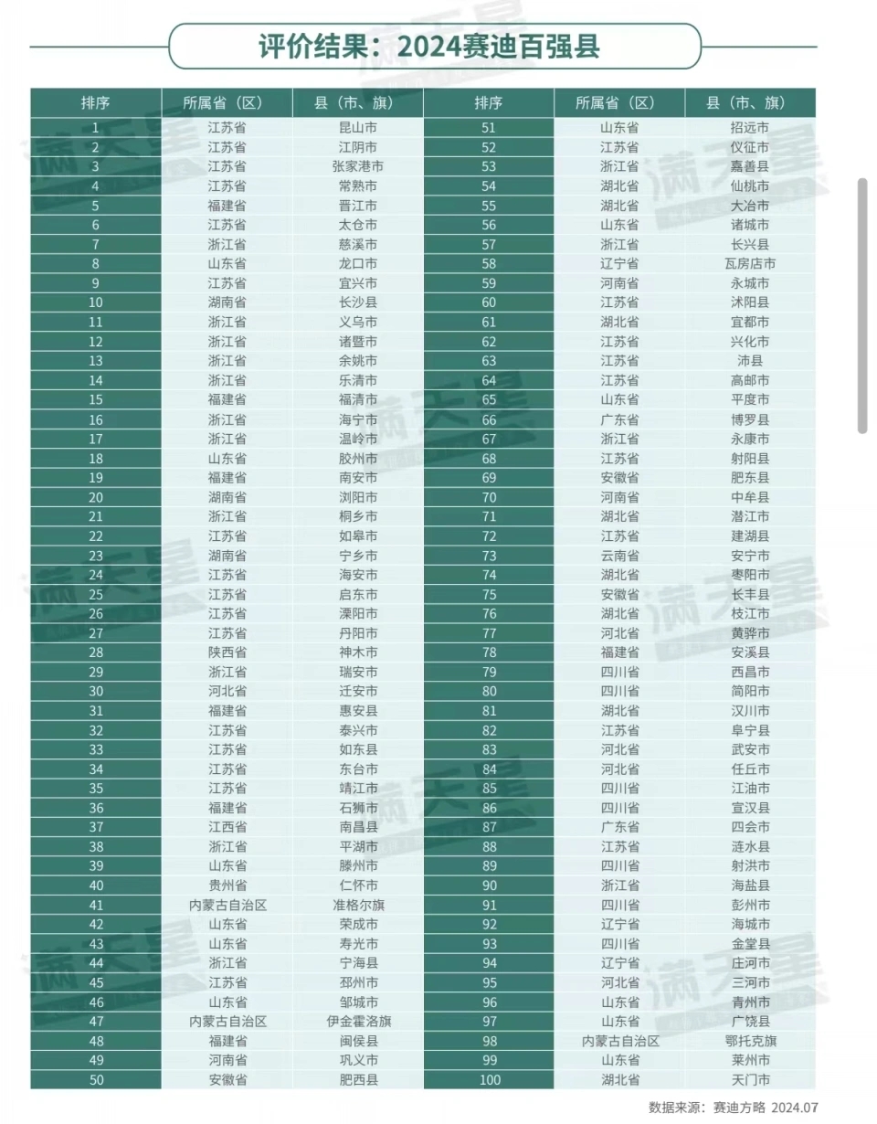 近日,《2024中國縣域經濟高質量發展研究》發布的一組數據引人注目——從2013年到2023年,全年地區生產總值超過1000億元的“千億縣”,數量從9個增至59個,10年增加50個。