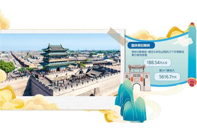 隨著游戲《黑神話:悟空》話題熱度持續上漲,山西作為游戲中取景地最多的省份,古建打卡熱度在國慶假期達到新高。國慶假日期間,游戲涉及山西的27個文物景點累計接待游客188.54萬人次,累計門票收入5616.7萬元。