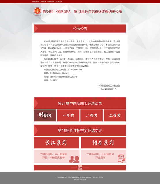 第34屆中國新聞獎 第18屆長江韜奮獎評選結果公示