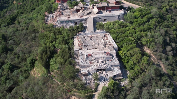 太山博物館建筑群前段,部分建筑坍塌嚴重(央廣網記者 張晉鵬 攝)