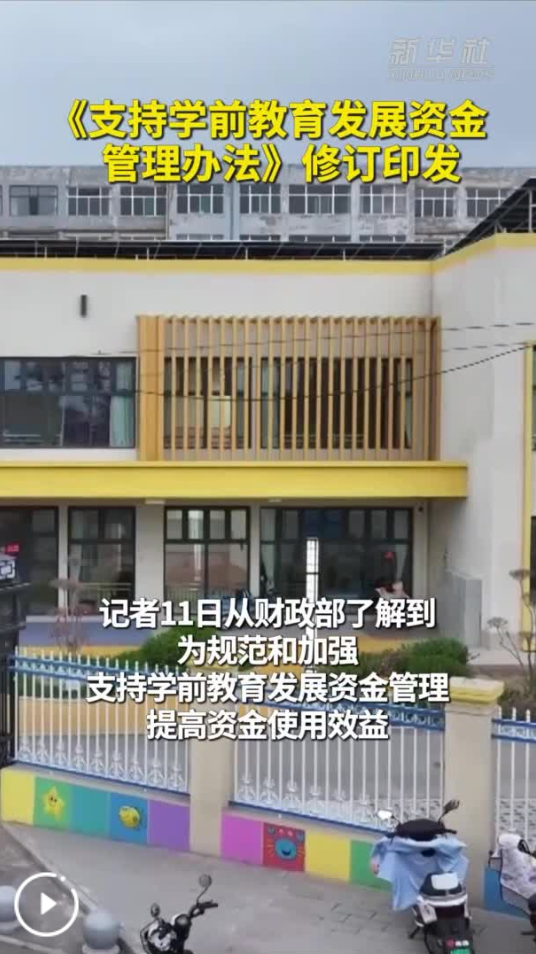 新華社北京8月11日電(記者申鋮)記者11日從財政部了解到,為規范和加強支持學前教育發展資金管理,提高資金使用效益,財政部、教育部修訂印發了《支持學前教育發展資金管理辦法》。