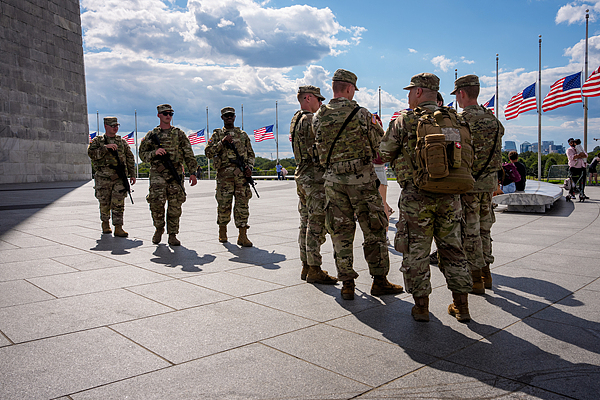 8月27日,美國華盛頓,武裝國民警衛隊成員在華盛頓紀念碑底部巡邏。 視覺中國