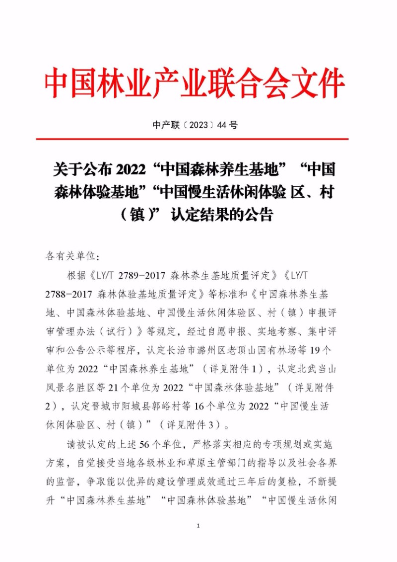 7月10日,根據關于公布2022“中國森林養生基地”“中國森林體驗基地”“中國慢生活休閑體驗區、村(鎮)”認定結果的公告,山西入選“兩地一區”11處。目前,山西“兩地一區”已達44處,超額完成“十四五”規劃的全省認定40處“兩地一區”任務指標。本次公告的山西“兩地一區”具體名單如下:
