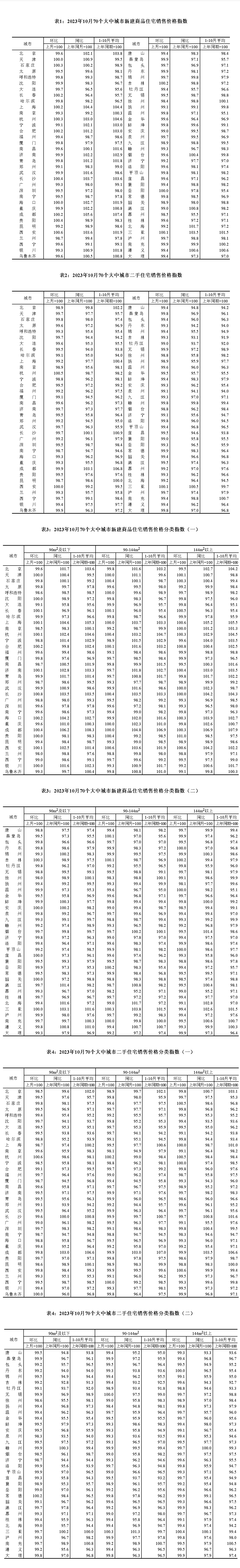 11月16日,國家統計局發布數據顯示,2023年10月份,70個大中城市商品住宅銷售價格環比下降城市個數略增,各線城市商品住宅銷售價格環比下降、同比漲跌互現。其中,新建商品住宅和二手住宅銷售價格環比下降城市分別有56個和67個,均比上月增加2個;新建商品住宅銷售價格同比下降城市有47個,比上月增加2個;二手住宅同比下降城市有67個,個數與上月相同。