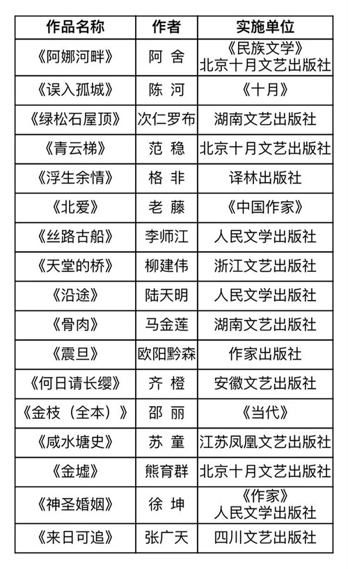 新時(shí)代文學(xué)攀登計(jì)劃首期支持項(xiàng)目名單