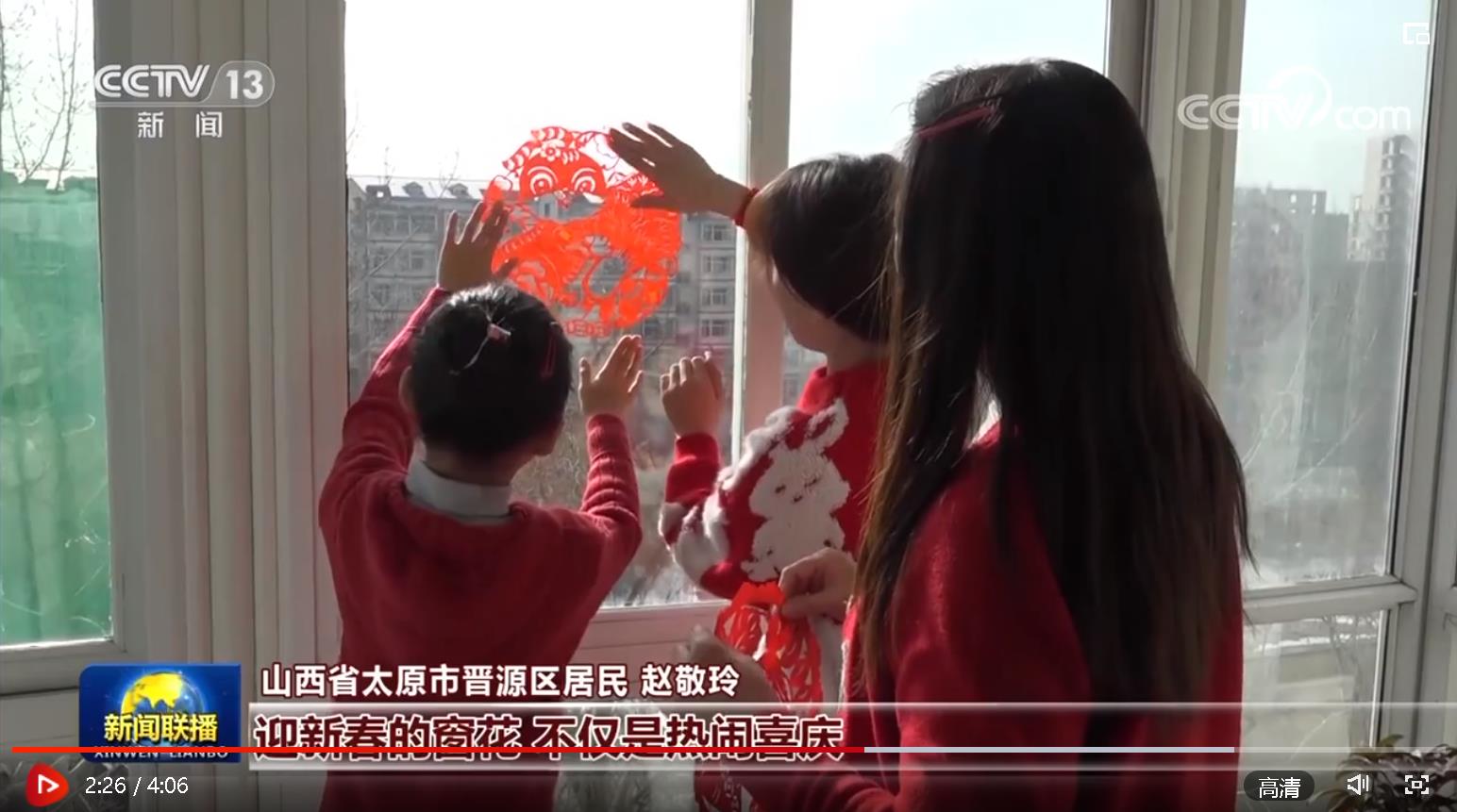 “在山西太原,‘五福臨門’‘玉兔迎春’等主題豐富的窗花,讓節日氣氛越發濃厚。”《新聞聯播》在《張燈結彩慶新春 喜慶祥和中國年》報道中,展示了太原市民剪窗花迎新春的喜悅。晉源區居民趙敬玲說:“迎新春的窗花,不僅僅是熱鬧喜慶,也寄托了我們對新春的祝愿。”