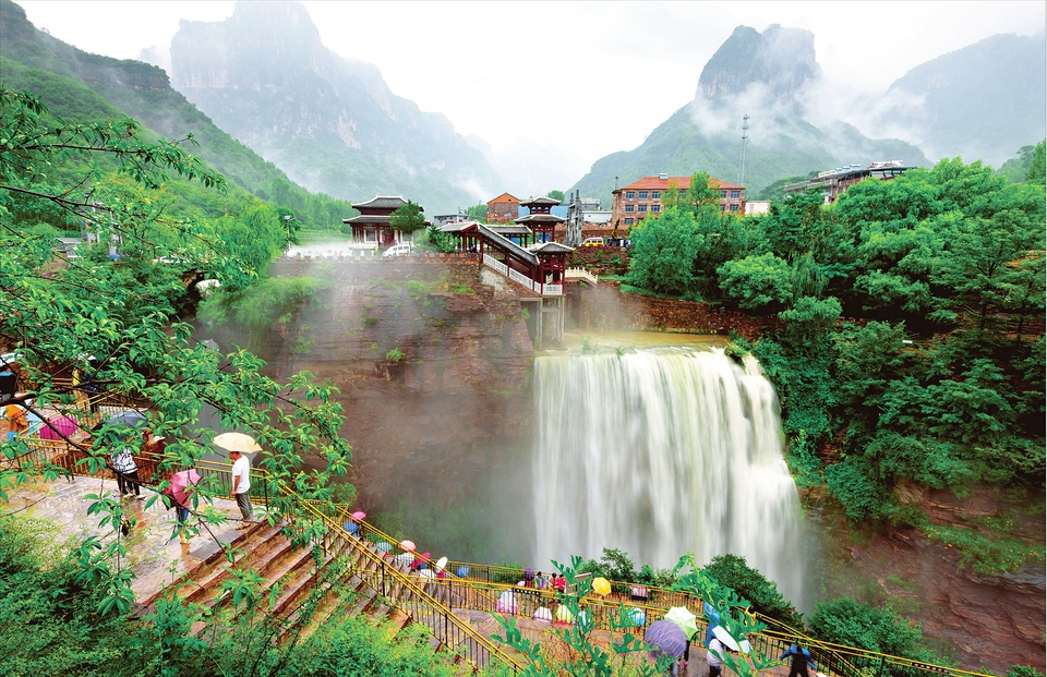 晉城太行錫崖溝旅游度假區(qū)瀑布奔騰而下,吸引游客駐足觀賞。吳艷斐攝