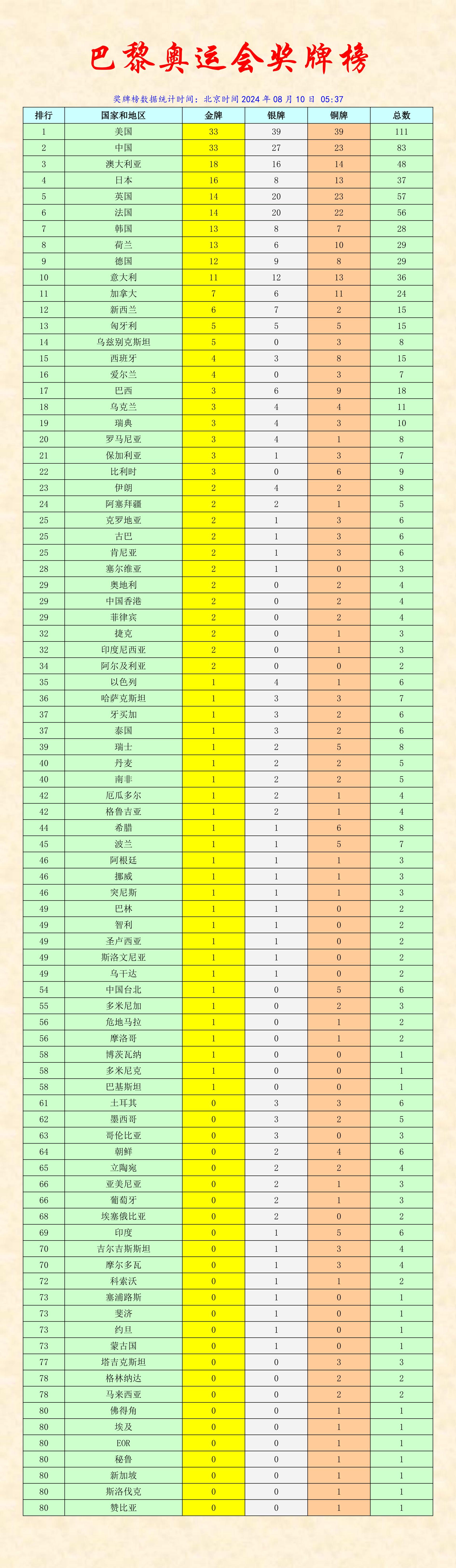 感悟巴黎奧運會獎牌榜——看看最后三日總成績
