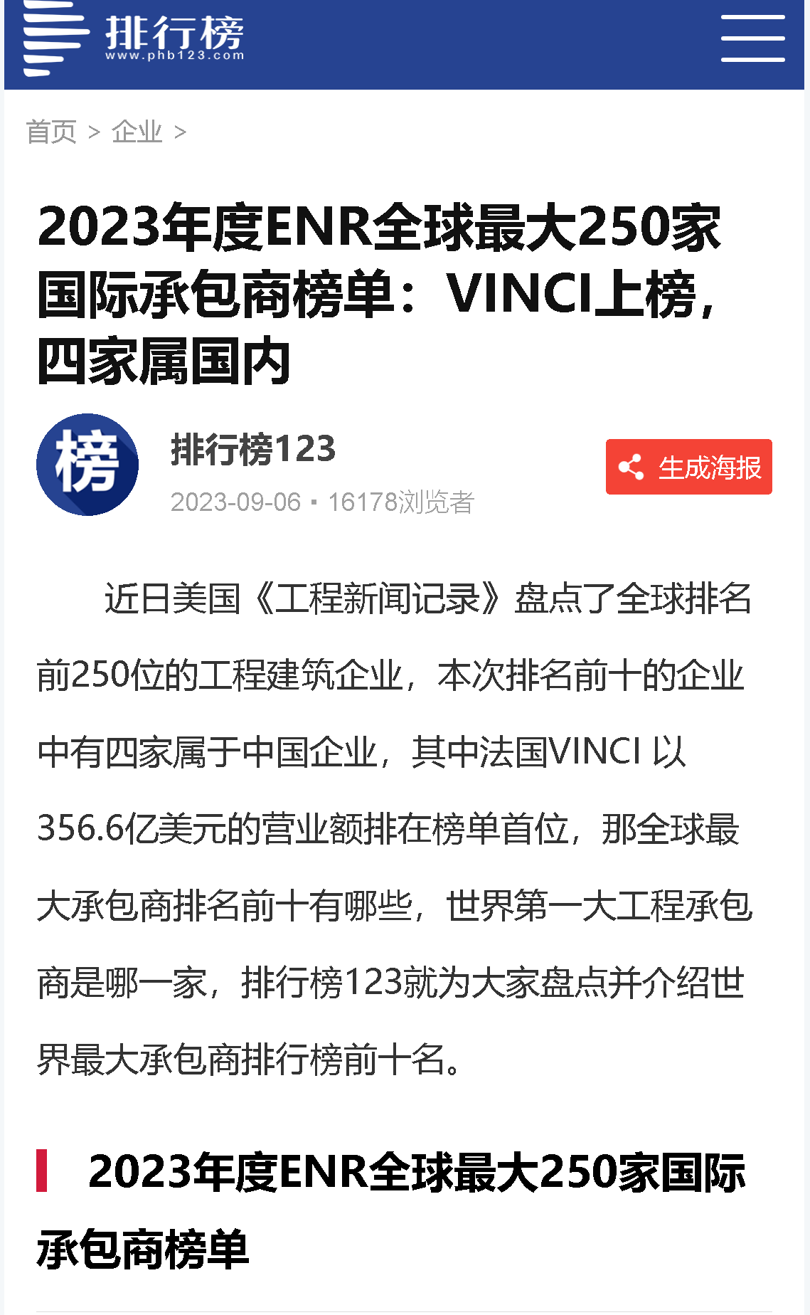 ENR全球最大250家國際承包商榜單發布">2023